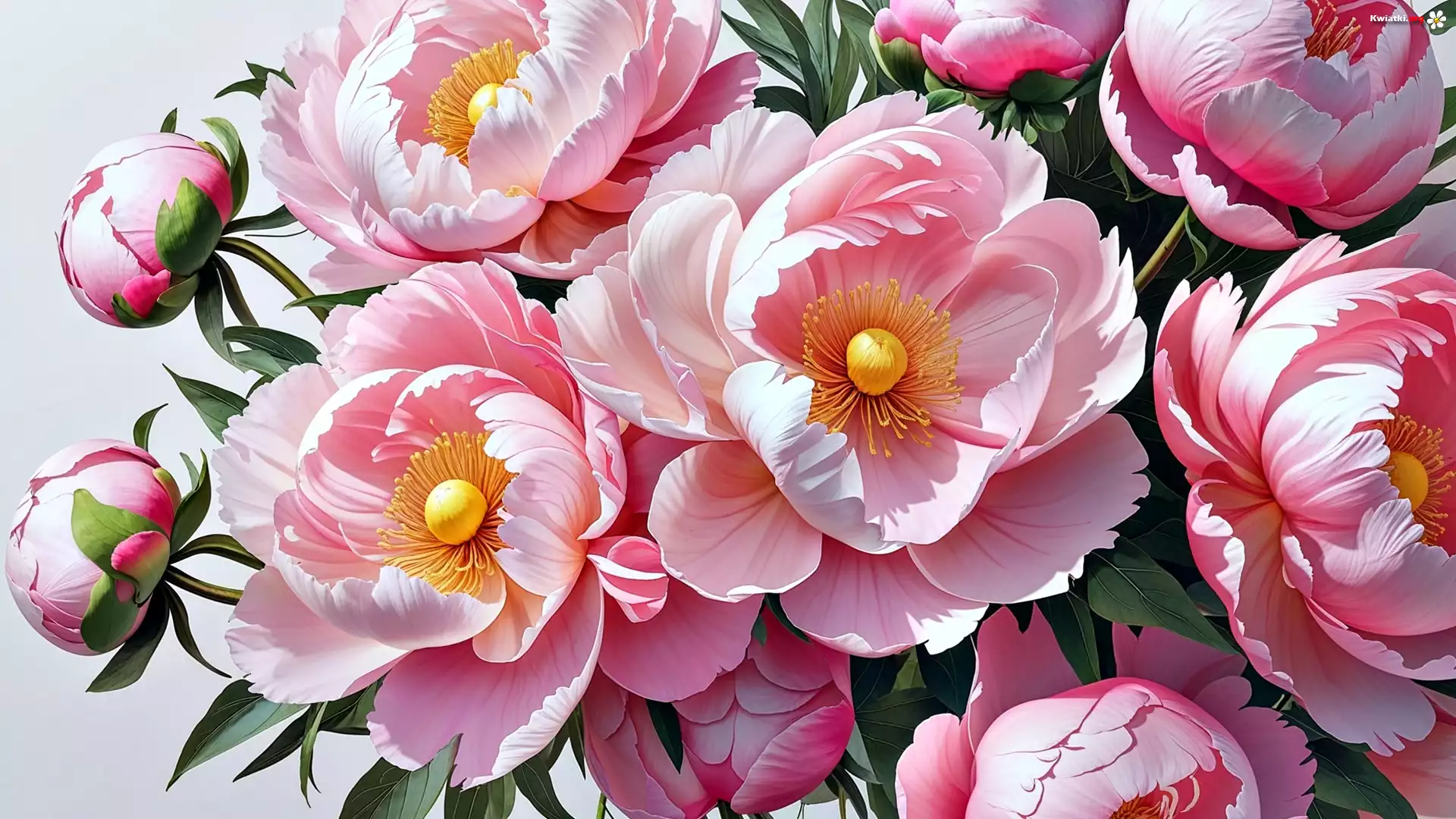 Piwonie, Różowe, Rozwinięte, Kwiaty, Grafika - Zdjęcia