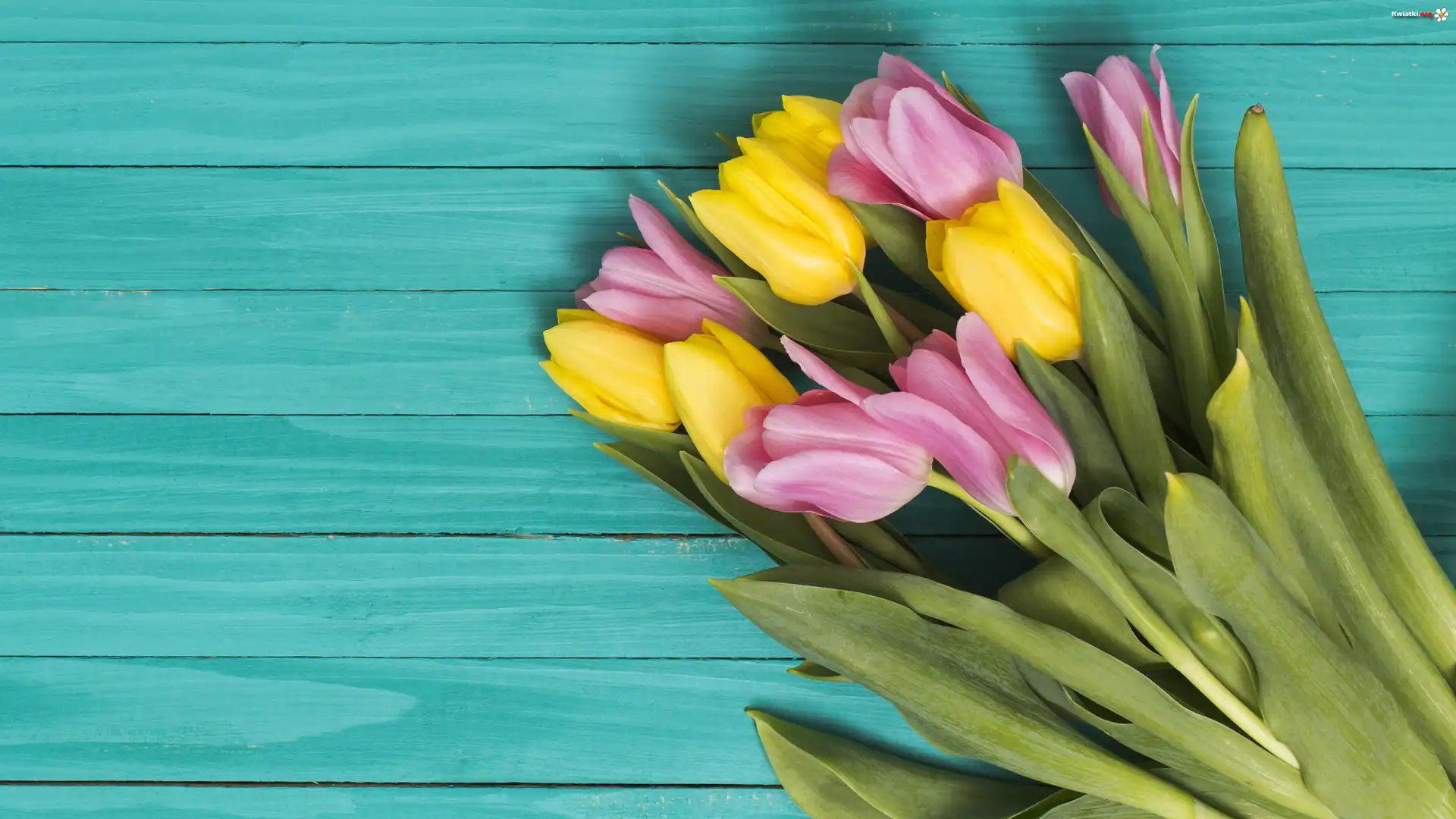 Kwiat Różowe, Żółte, Tulipany, Deski