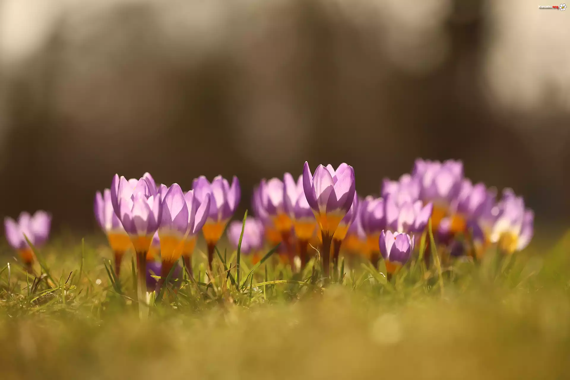 Różowo-żółte, Krokusy, Kwiaty - Zdjęcia