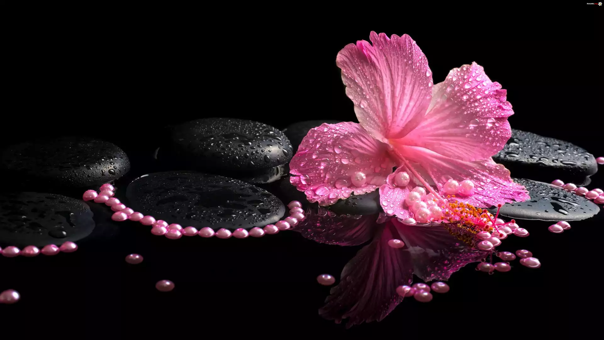 Różowy, Hibiskus, Kamienie, Perły, SPA - Zdjęcia