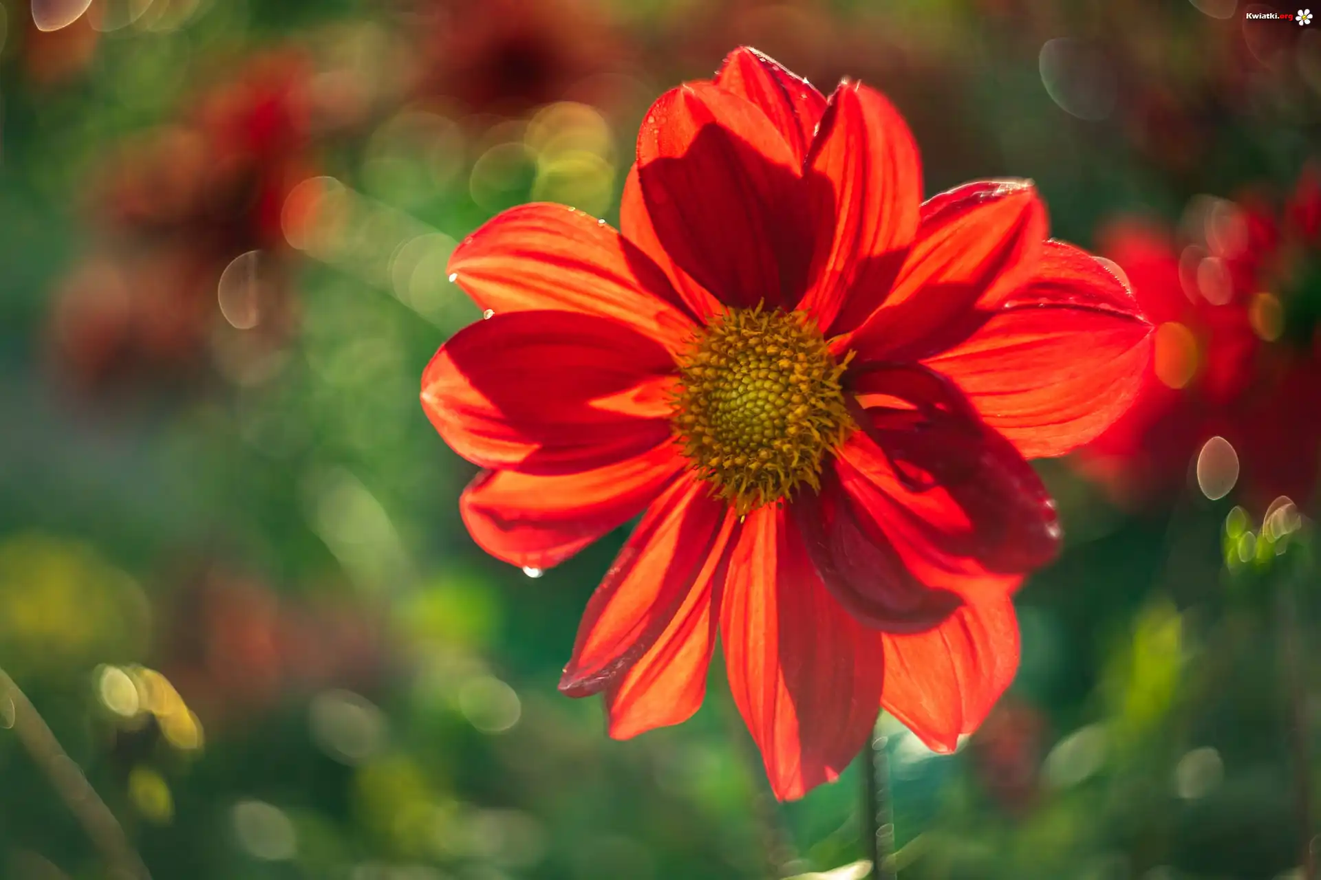 Kwiat Kwiat, Dalia, Czerwona, Rozświetlona