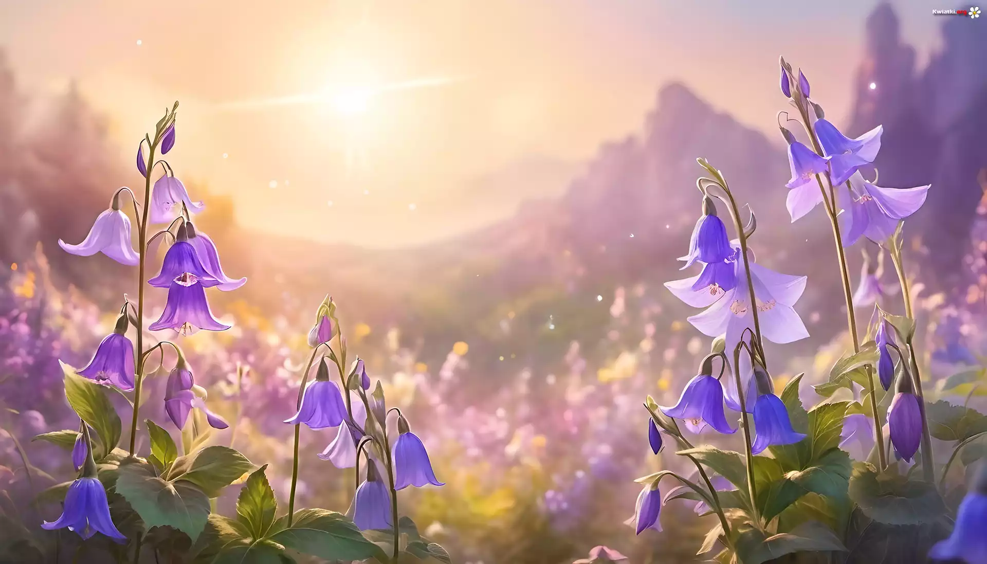 Fioletowe, Rozświetlone, Dzwonki, Kwiaty, Grafika - Zdjęcia