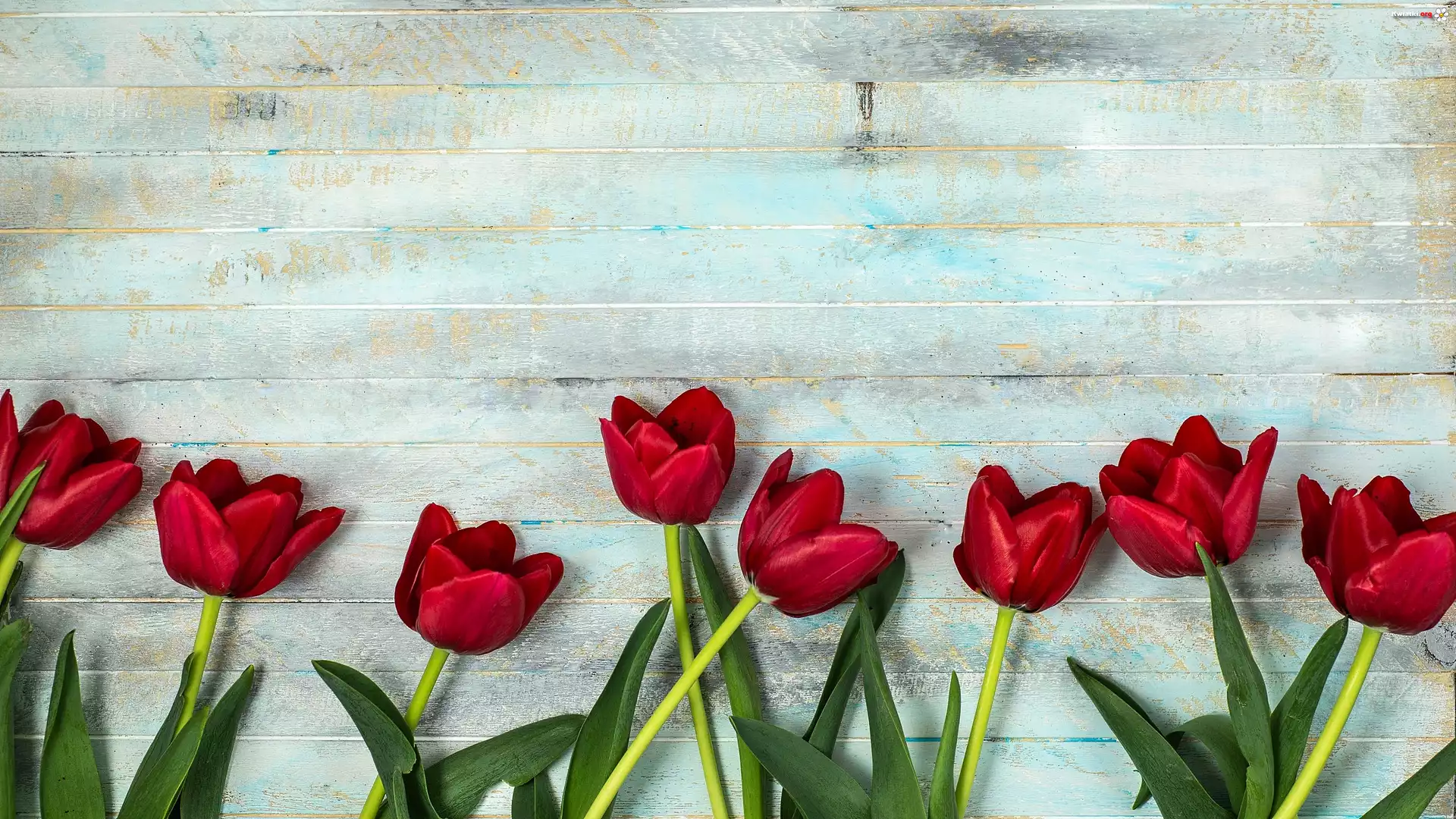 Kwiat Rozwinięte, Czerwone, Tulipany, Deski