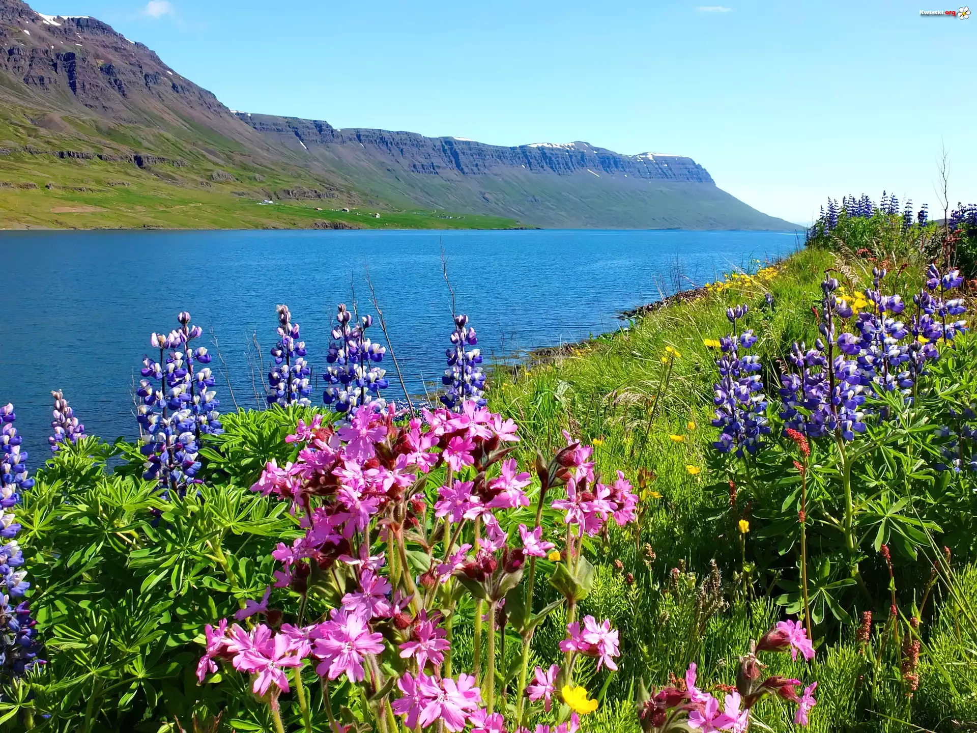 Kwiat Łąka, Kwiaty, Rzeka, Góry