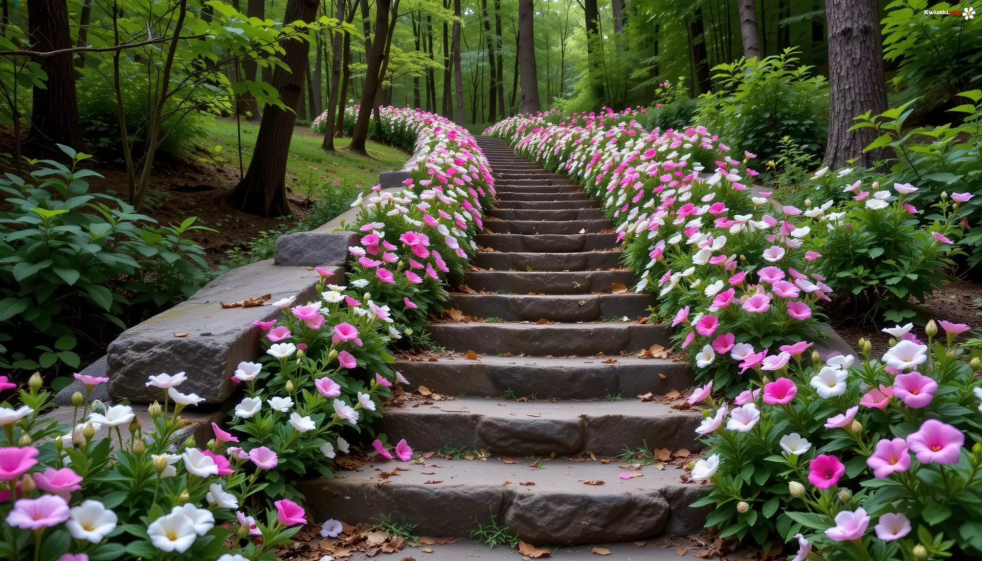Schody, Kwiaty, Drzewa - Zdjęcia