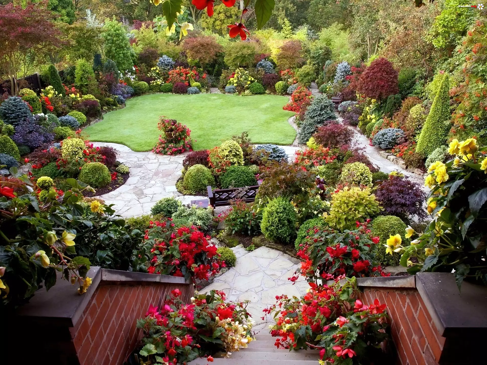 Schody, Kolorowy, Ogród, Kwiat - Zdjęcia