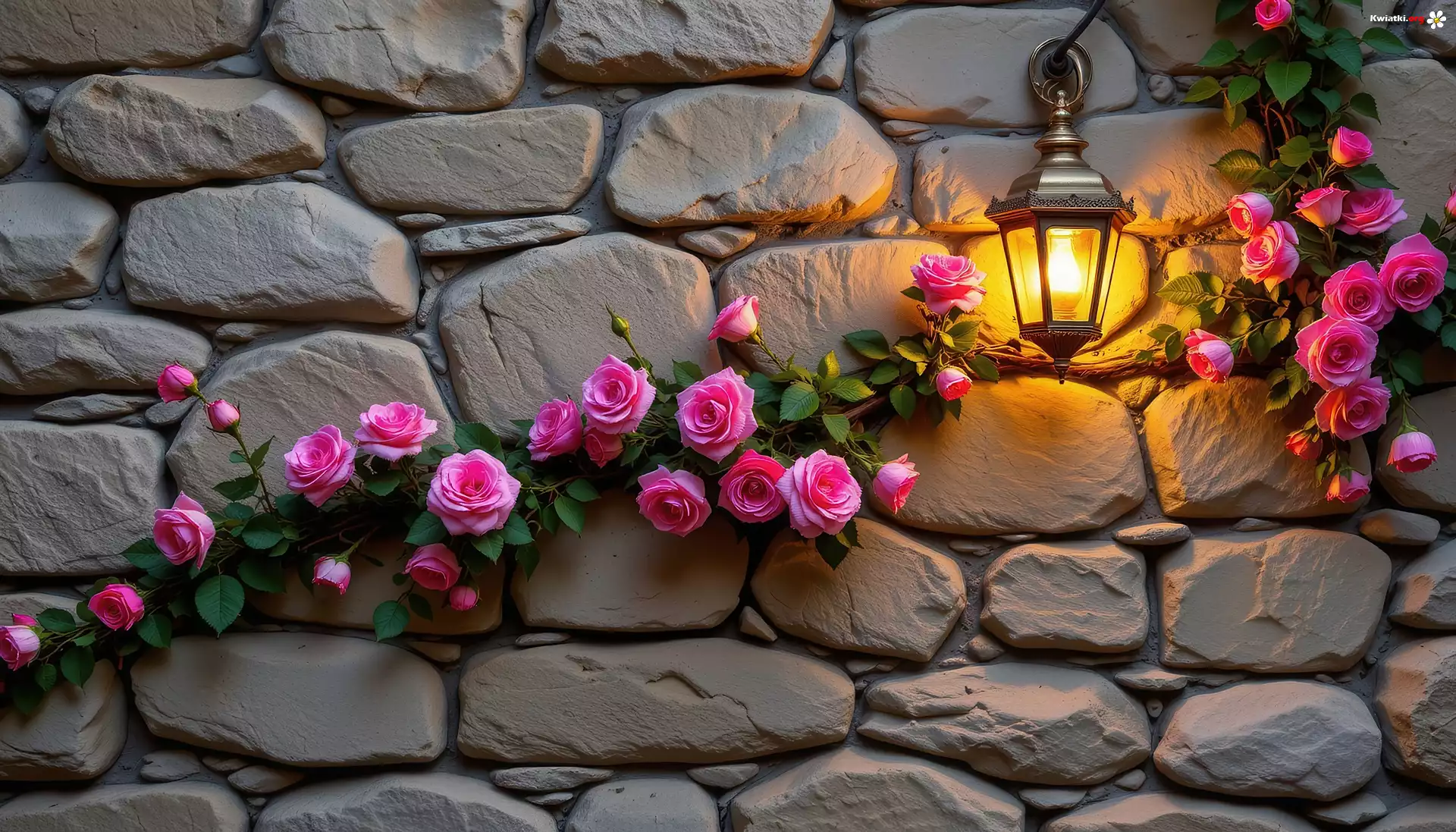 Kwiaty, Pnące, Róże, Ściana, Lampa, Grafika AI - Zdjęcia