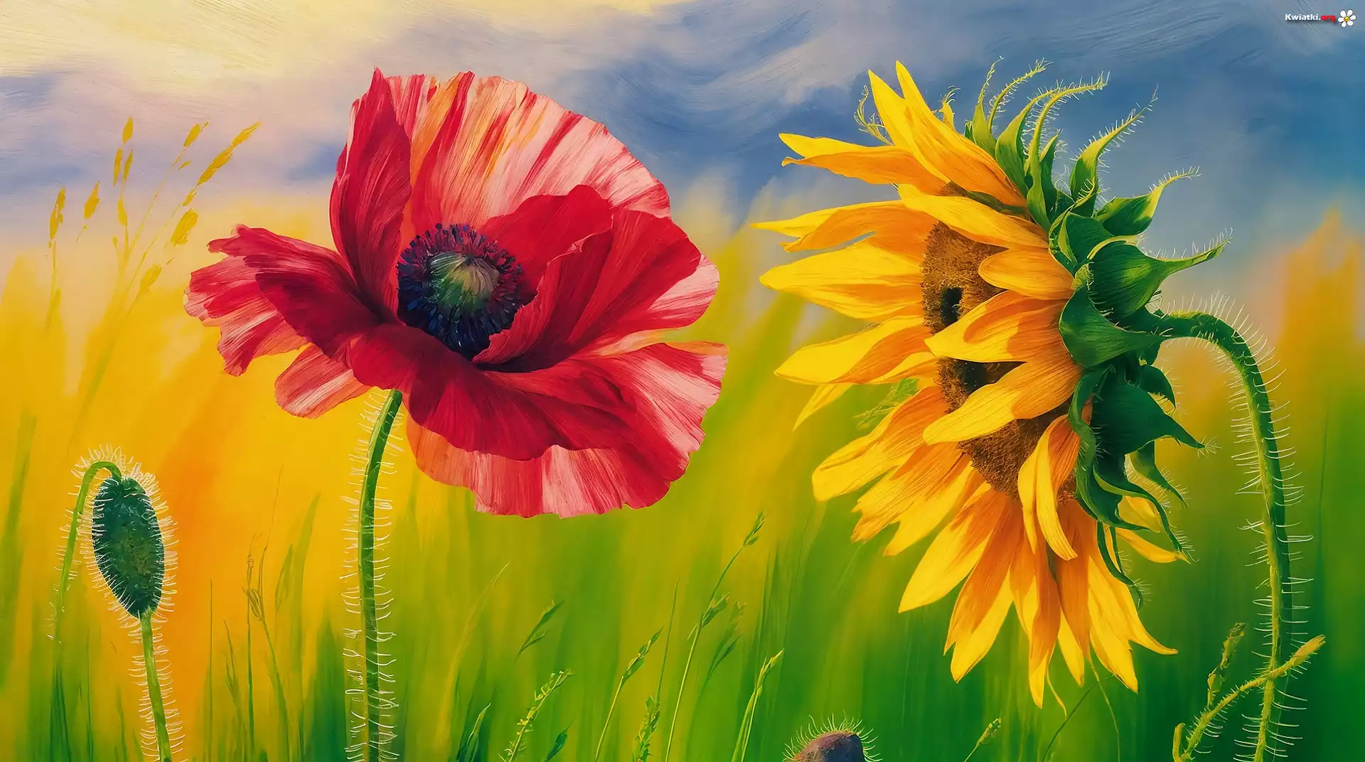 Grafika, Kwiaty, Mak, Słonecznik - Zdjęcia