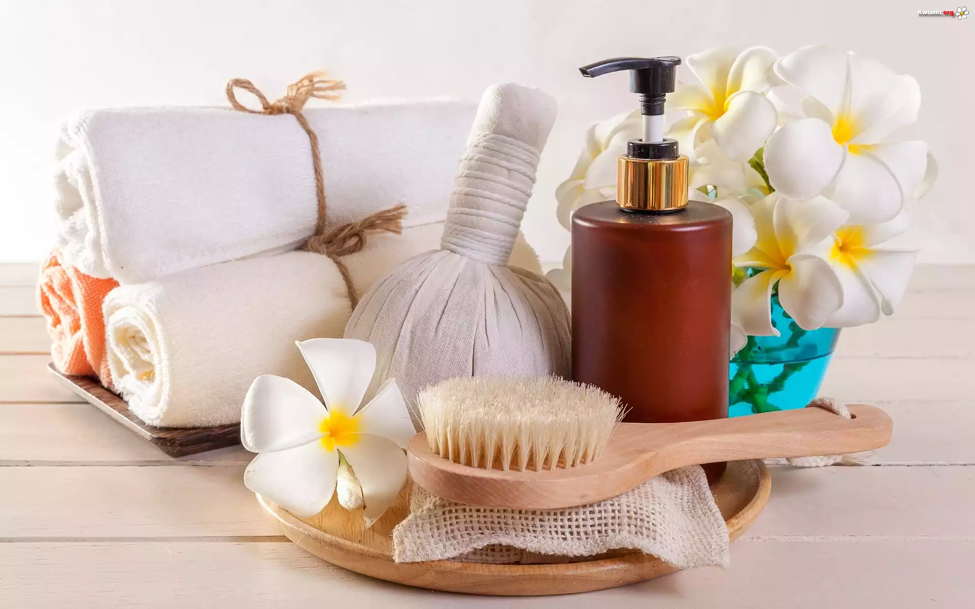 Kwiat SPA, Ręczniki, Szczotka, Kwiaty, Plumerie