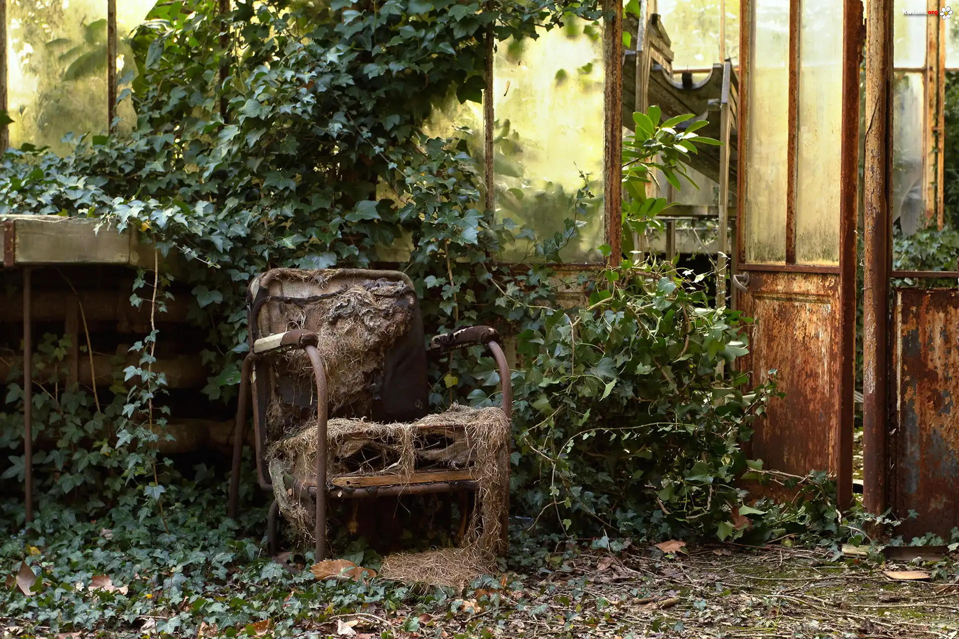 Kwiat Stara, Zniszczona, Oranżeria, Ruiny, Fotel, Bluszcz