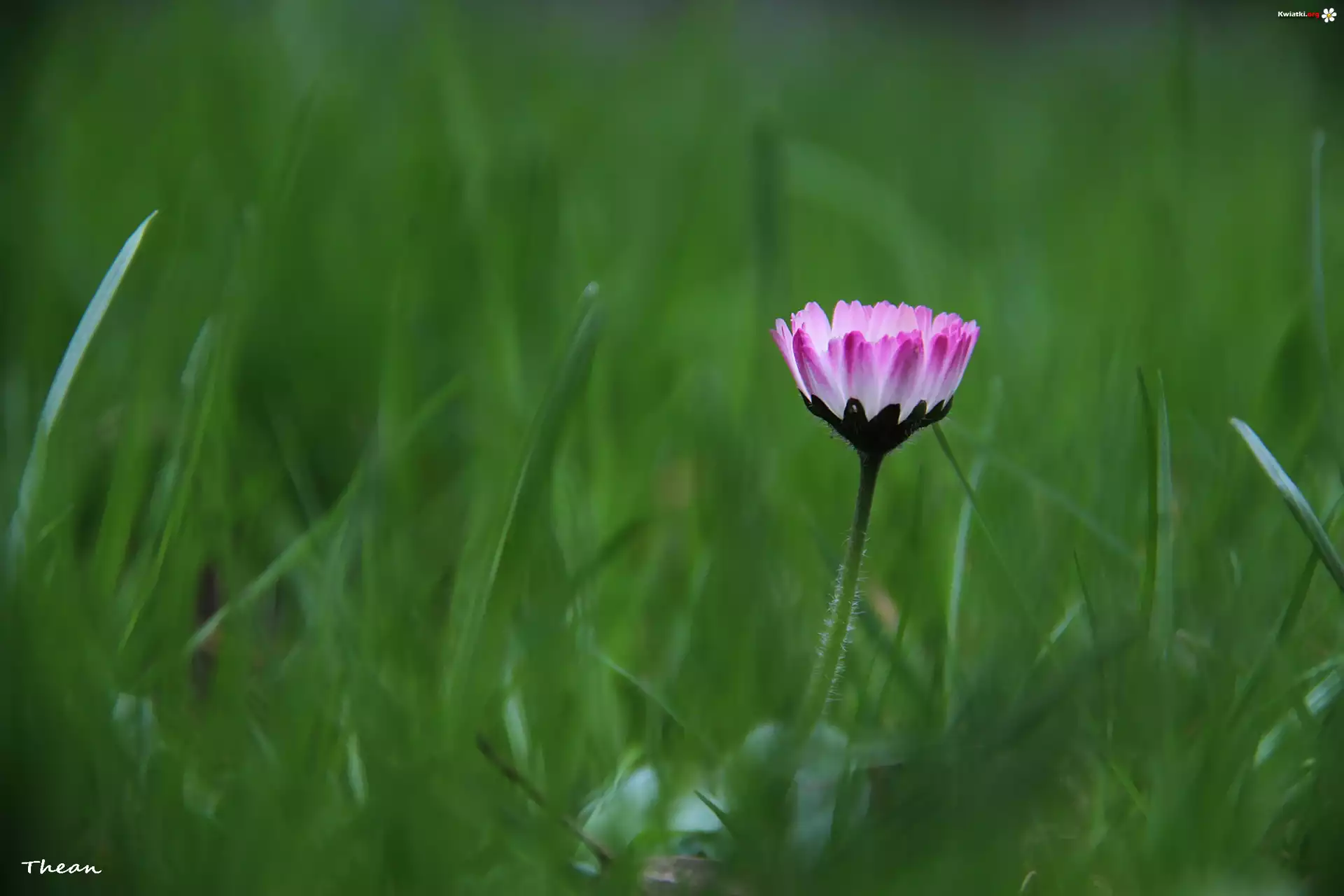 Kwiat Stokrotka, Różowe, Płatki, Trawa
