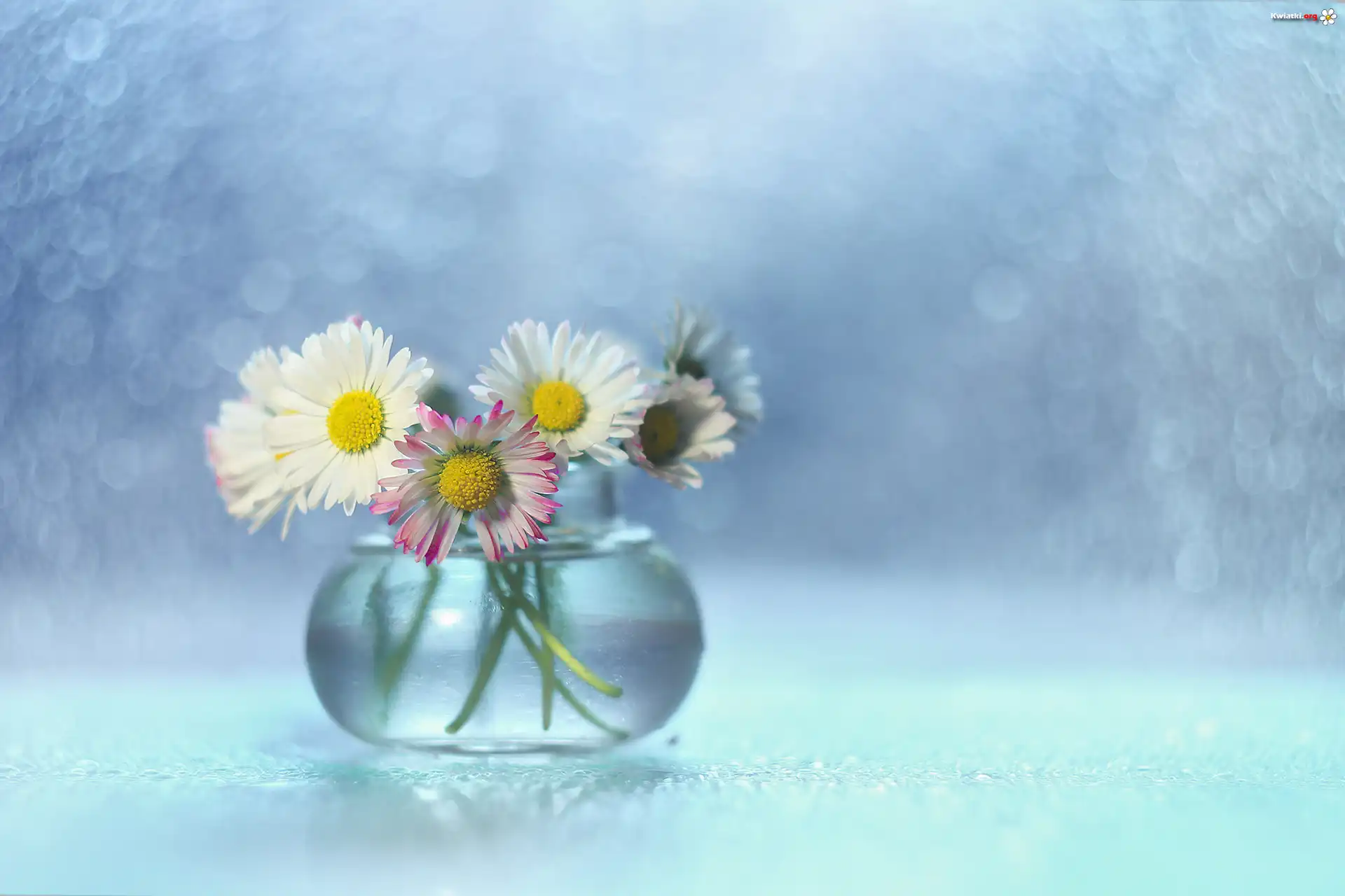 Stokrotki, Wazonik, Bokeh, Dekoracja - Zdjęcia