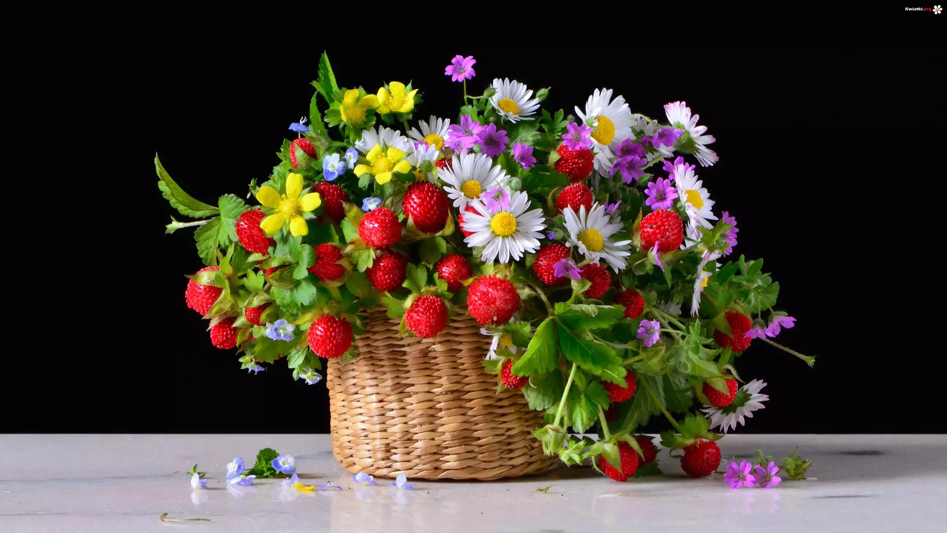 Koszyk, Stokrotki, Poziomki - Zdjęcia