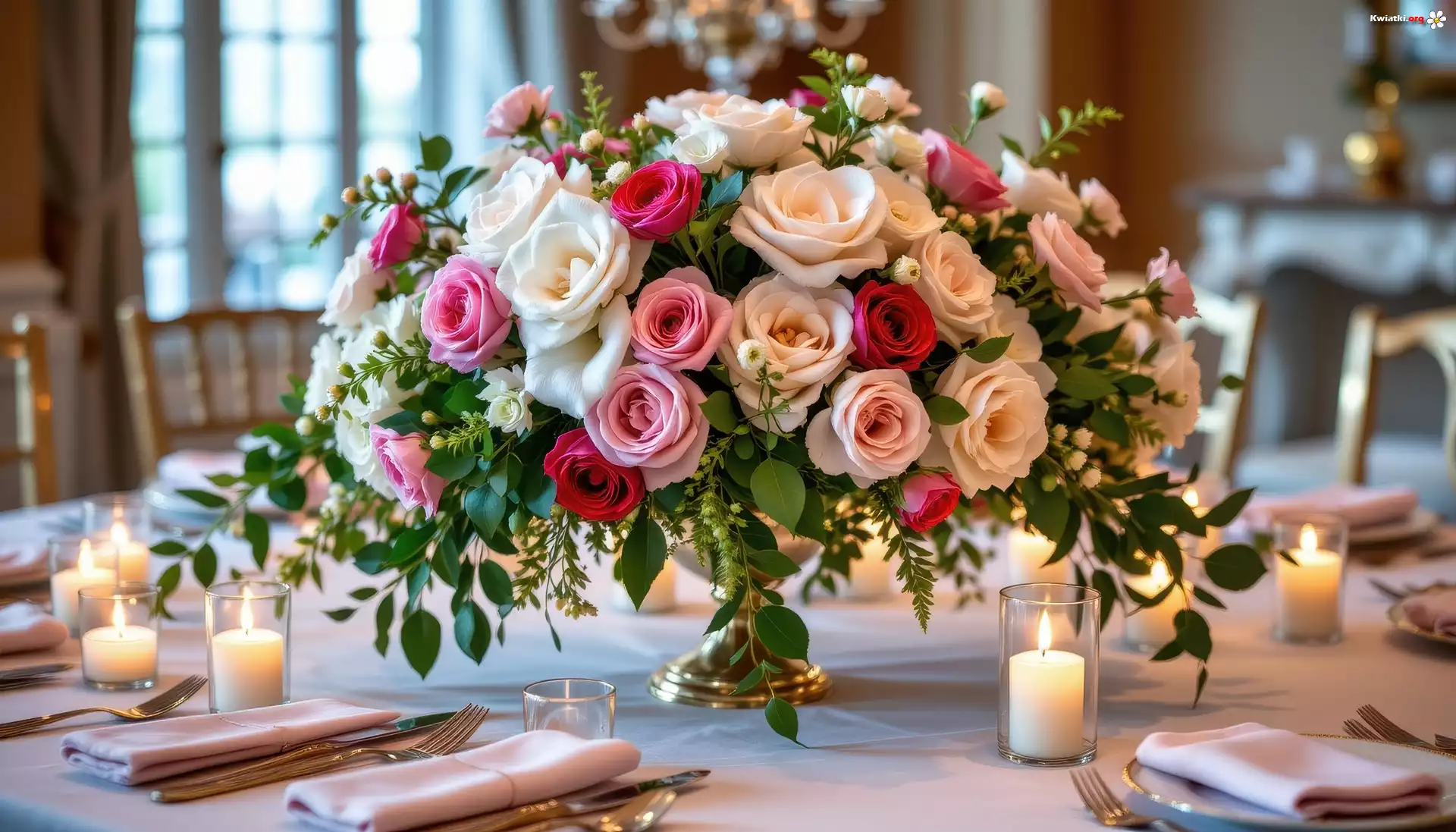 Kwiat Róże, Bukiet, Kwiaty, Stół, Świece, Grafika AI