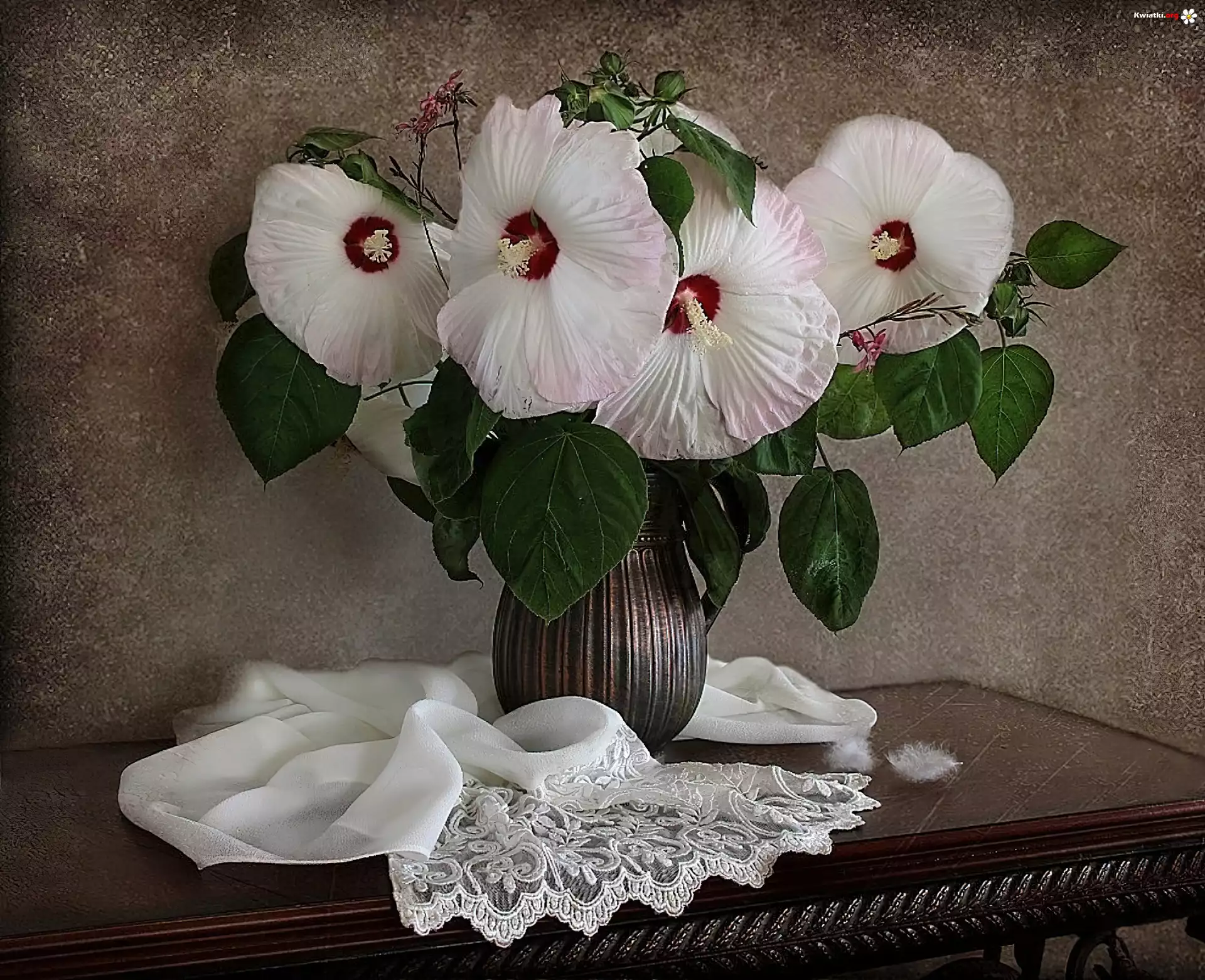 Kwiat Stolik, Szal, Białe, Hibiskusy