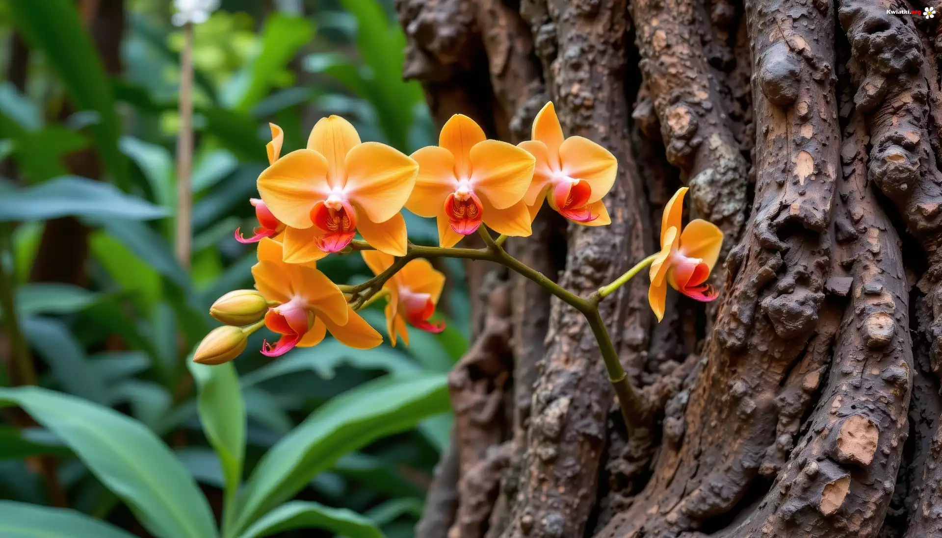 Kwiat Pomarańczowy, Storczyk, Drzewo, Pień, AI