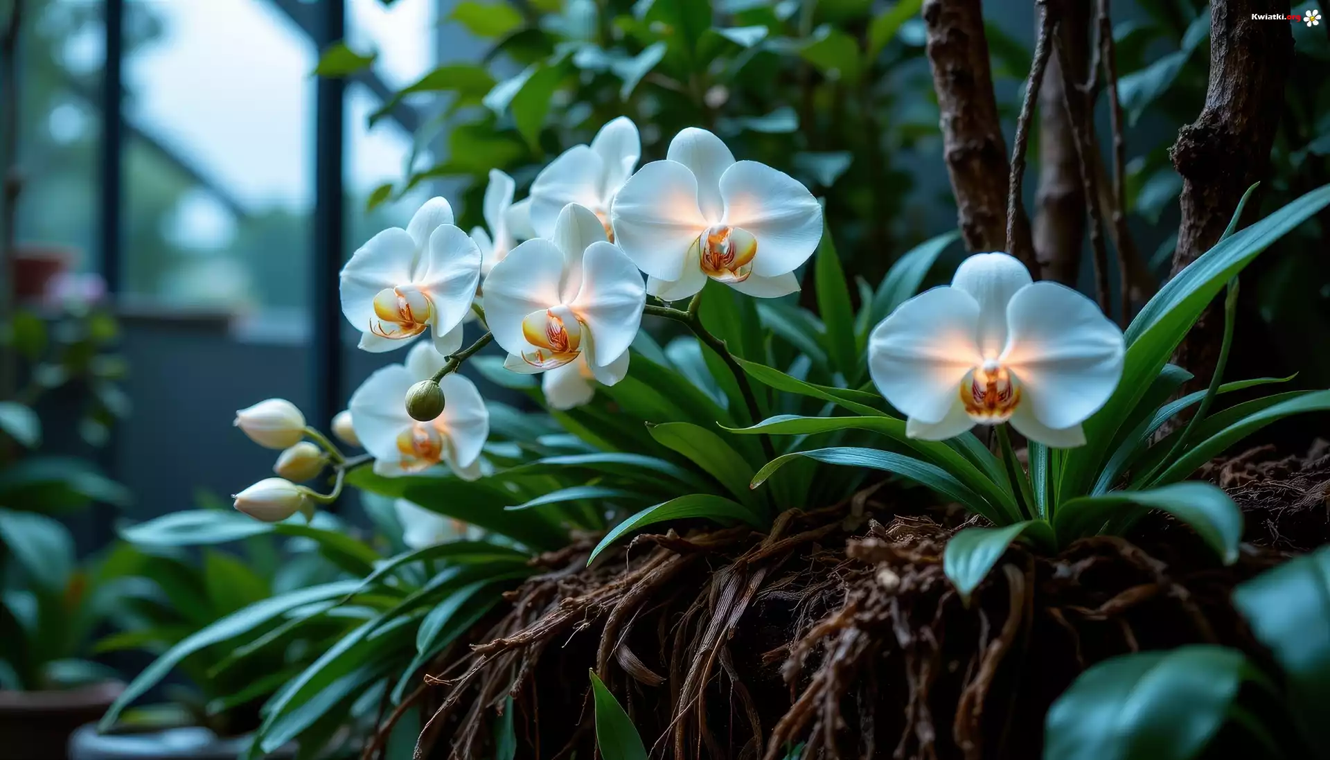 Kwiat Białe, Storczyki, Rozświetlone, Liście, AI