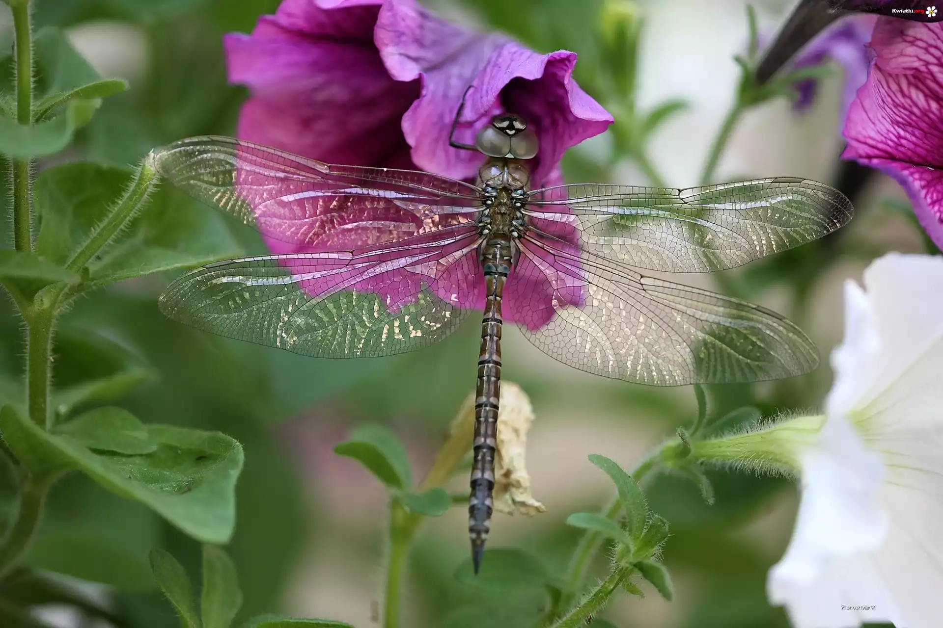 Kwiaty, Surfinie, Ważka - Zdjęcia