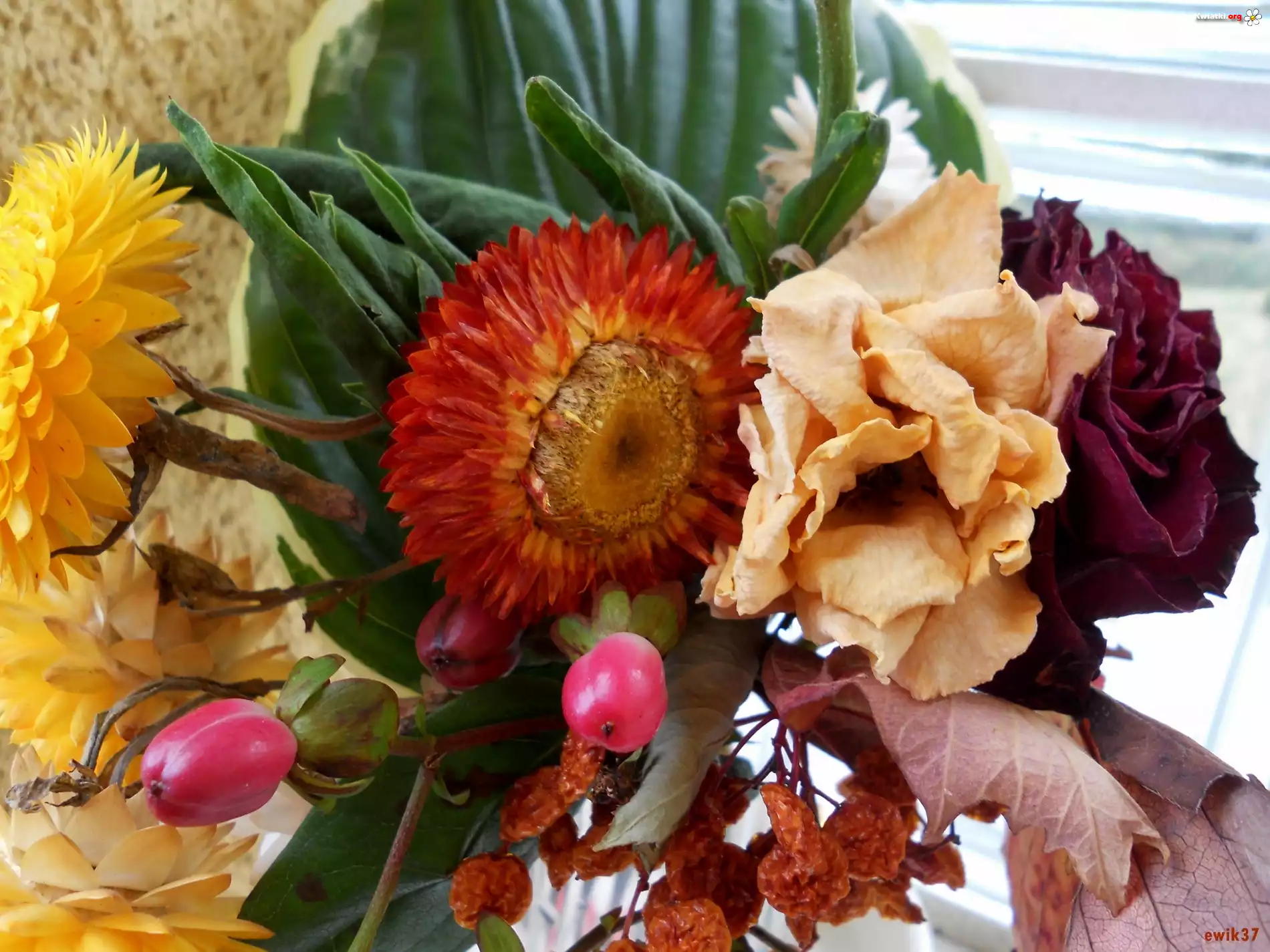 Kwiat Suszone, Róże, Kocanki, Ogrodowe