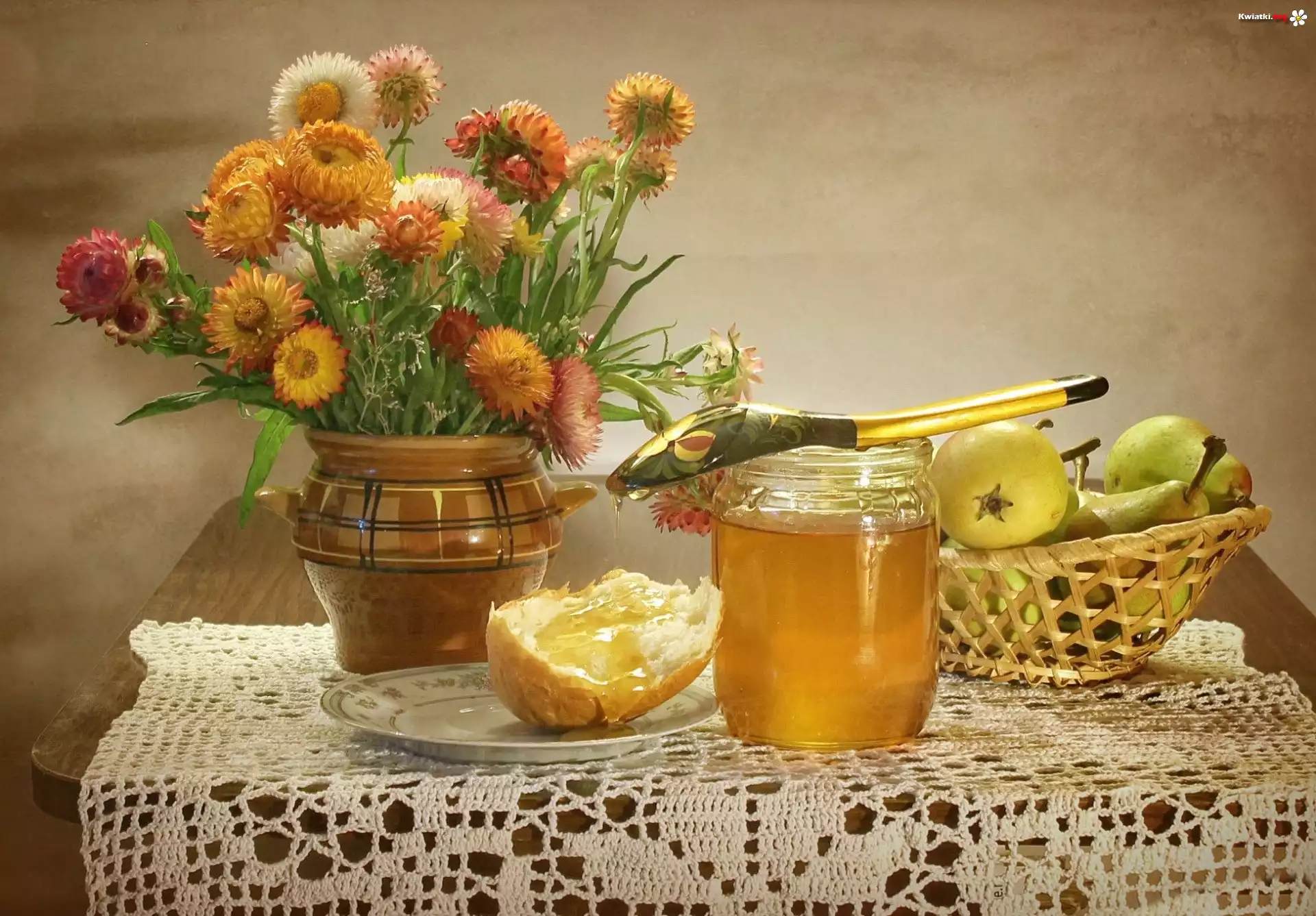 Kwiat Suszone, Kwiaty, Bukiet, Miod, Jablka