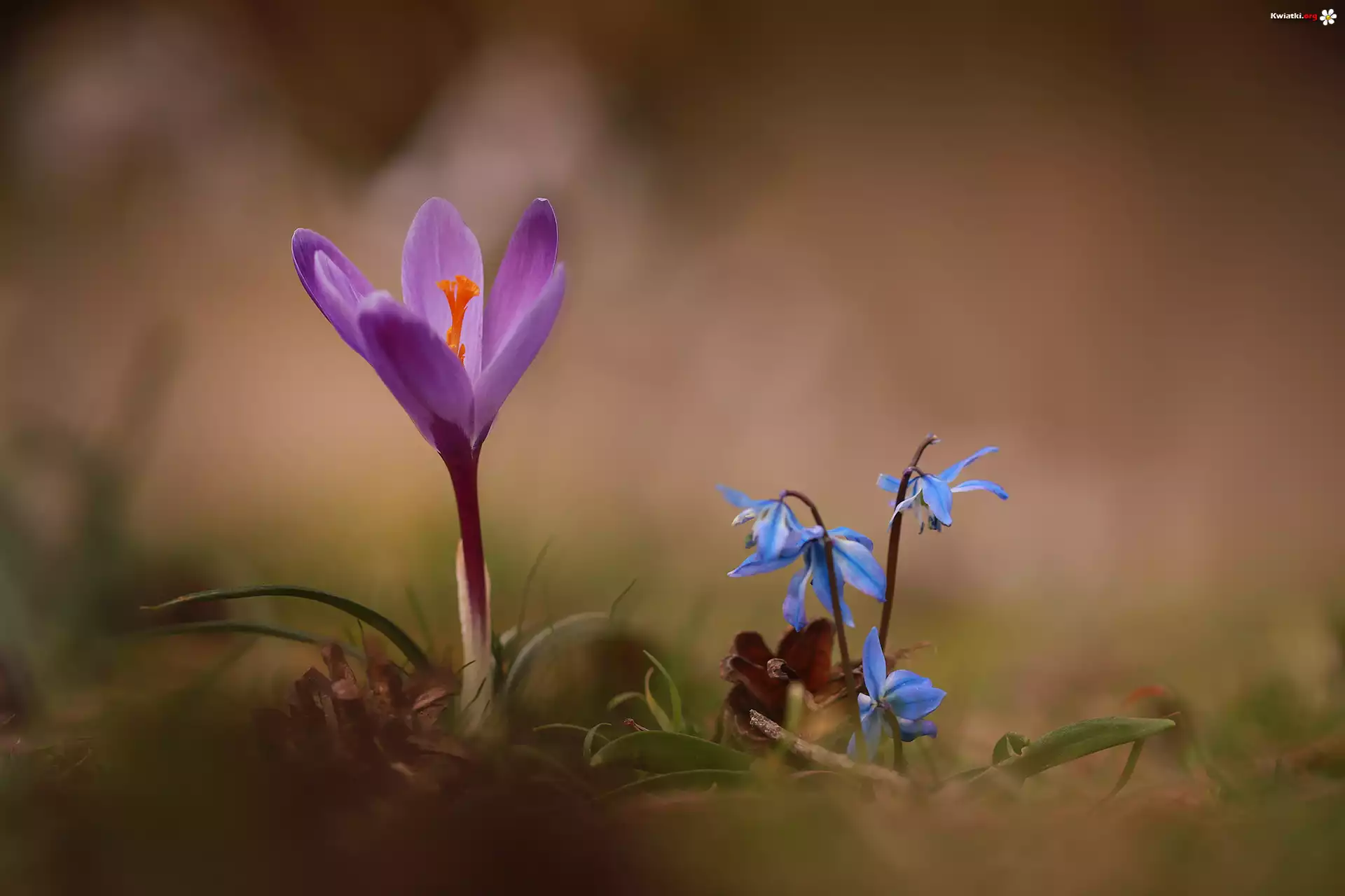 Fioletowy, Krokus, Cebulice syberyjskie, Kwiaty, Wiosenne - Zdjęcia