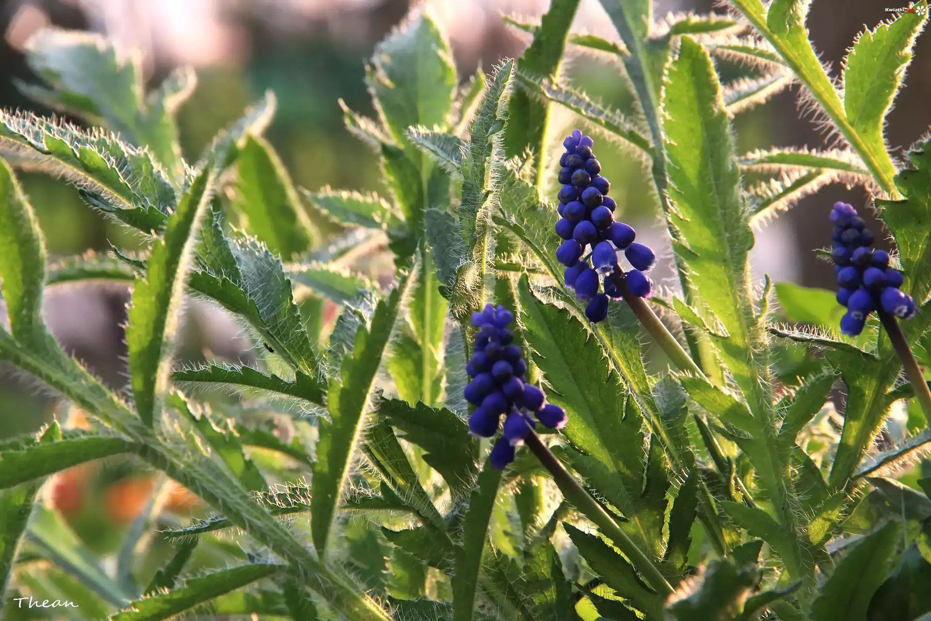 Kwiat Szafirki, Niebieskie, Kwiaty, Liście