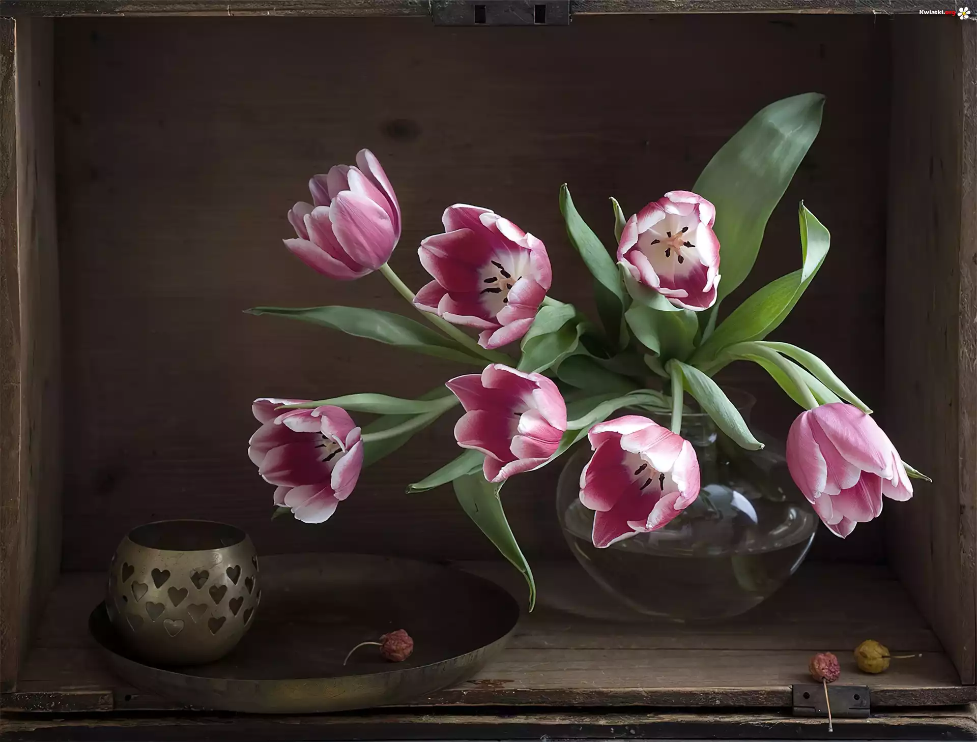 Kwiat Szklana, Kula, Różowe, Tulipany