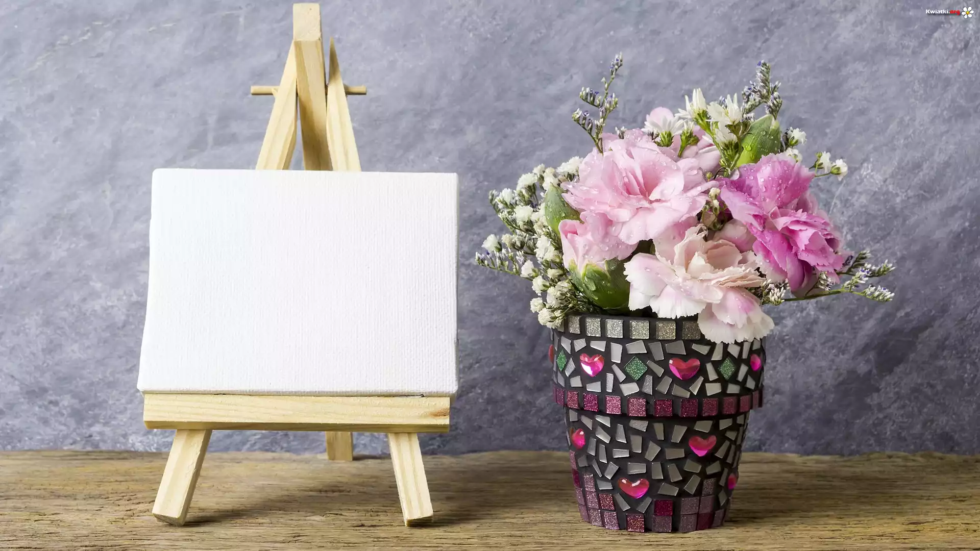 Tablica, Kwiaty, Goździki Szabo, Ozdobna, Doniczka - Zdjęcia
