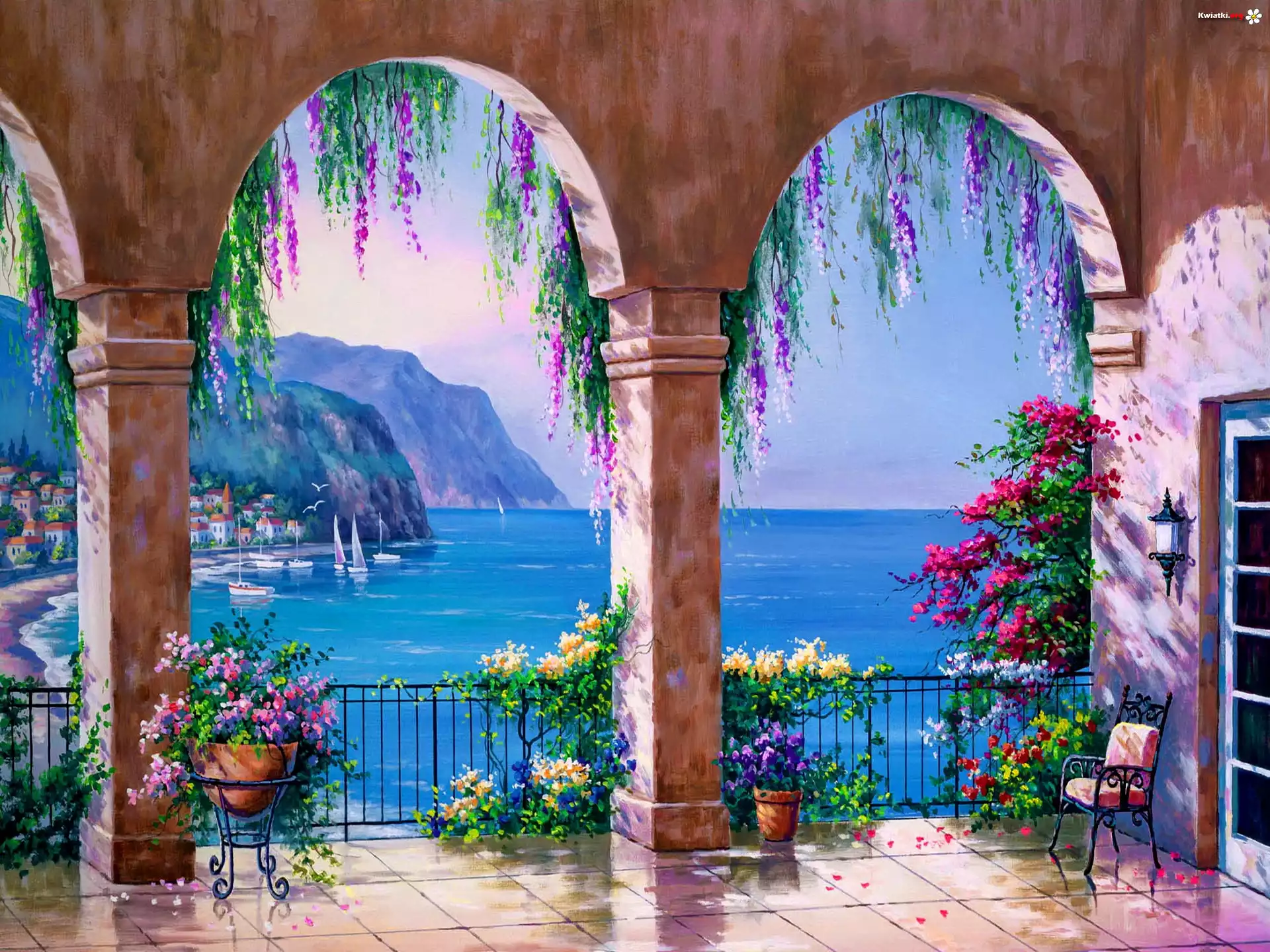 Taras, Kwiaty, Widok, Morze - Zdjęcia