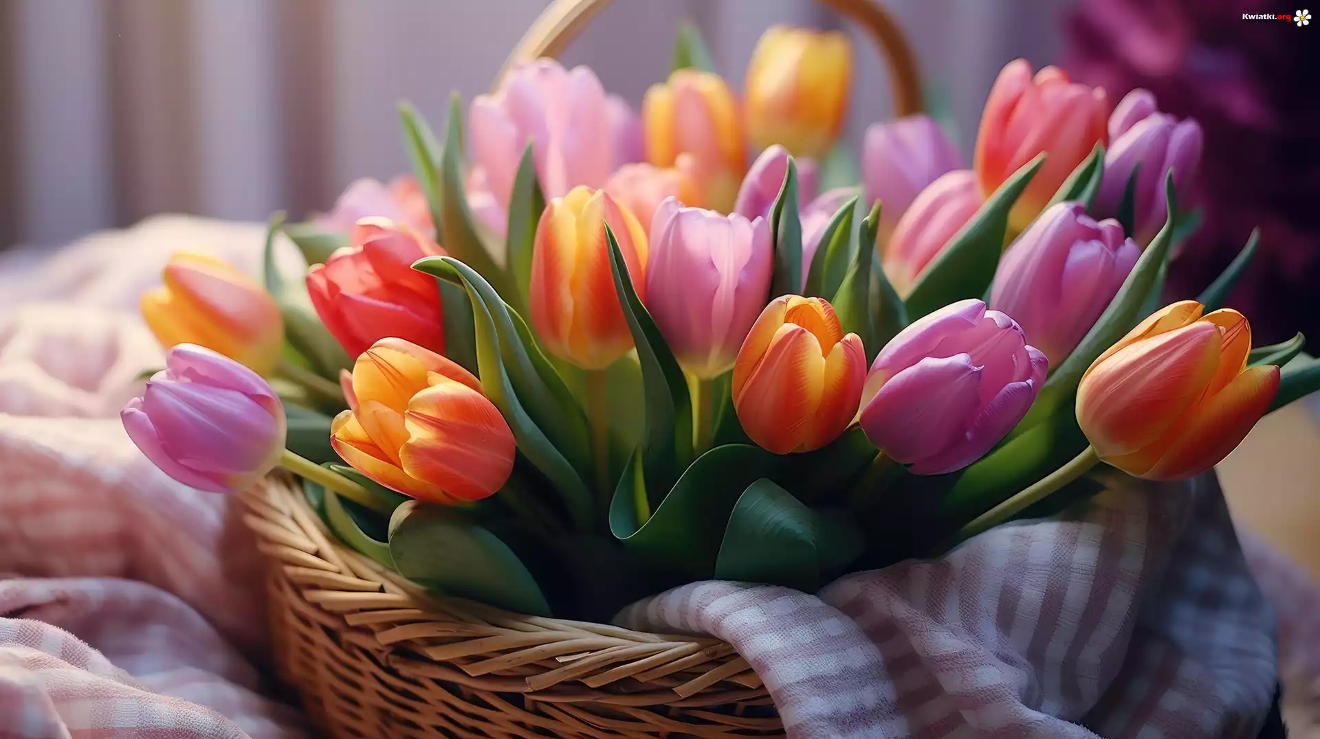 Kwiat Kolorowe, Tulipany, Kosz, Tkanina