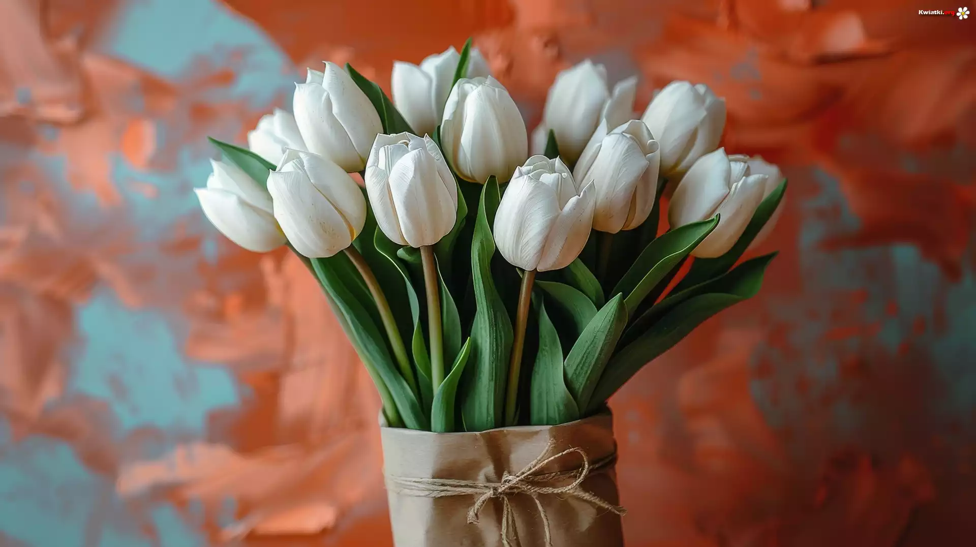Kwiat Bukiet, Kwiaty, Białe, Tulipany, Szary, Papier, Sznurek, Tło