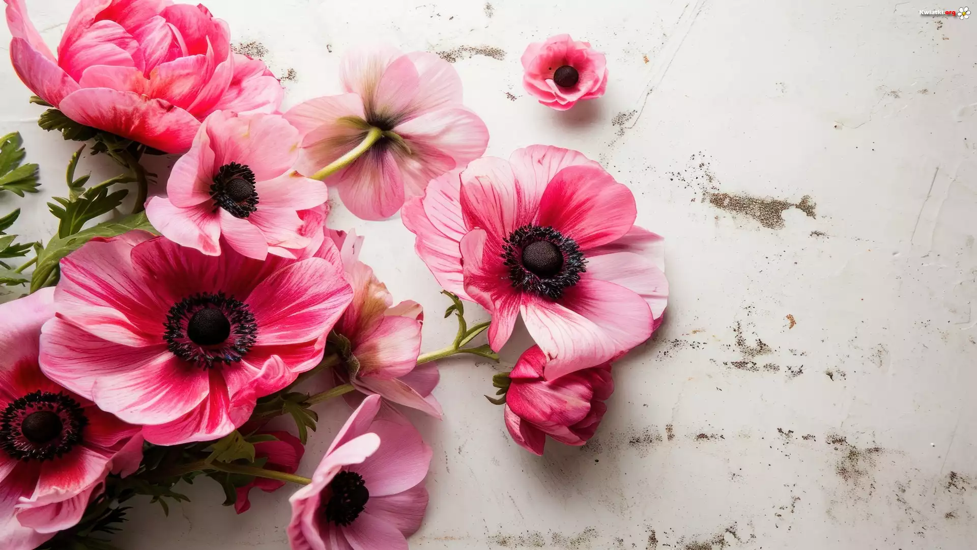 Kwiat Różowe, Zawilce, Jasne, Tło