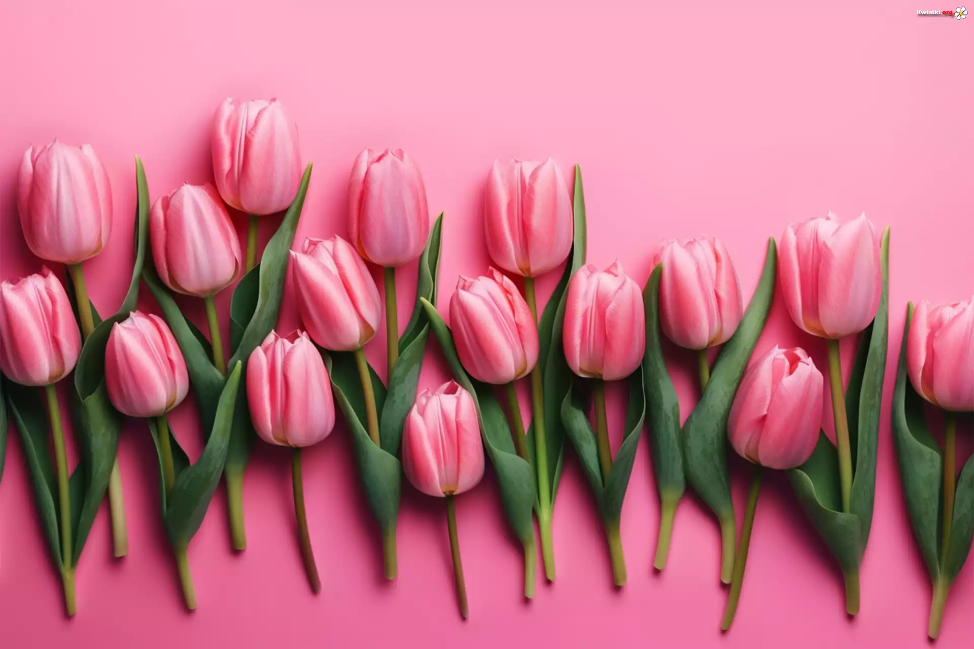 Tulipany, Listki, Różowe, Tło - Zdjęcia