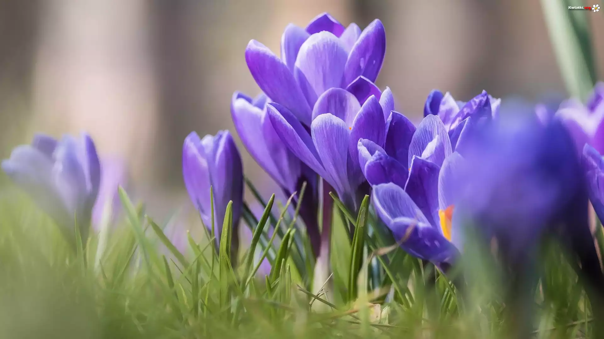 Kwiat Fioletowe, Kwiaty, Krokusy, Trawa