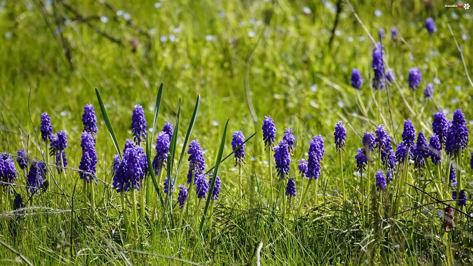 Kwiaty, Szafirek, Łąka, Trawa - Zdjęcia