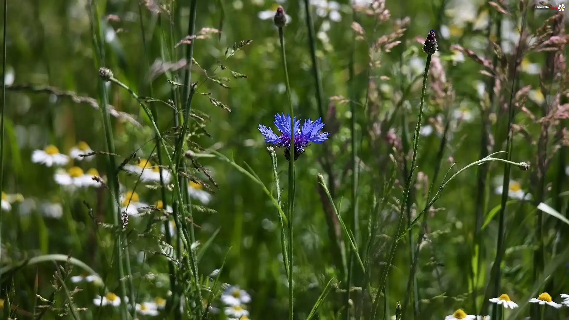 Kwiaty, Chabry, Rumianki, Trawa - Zdjęcia