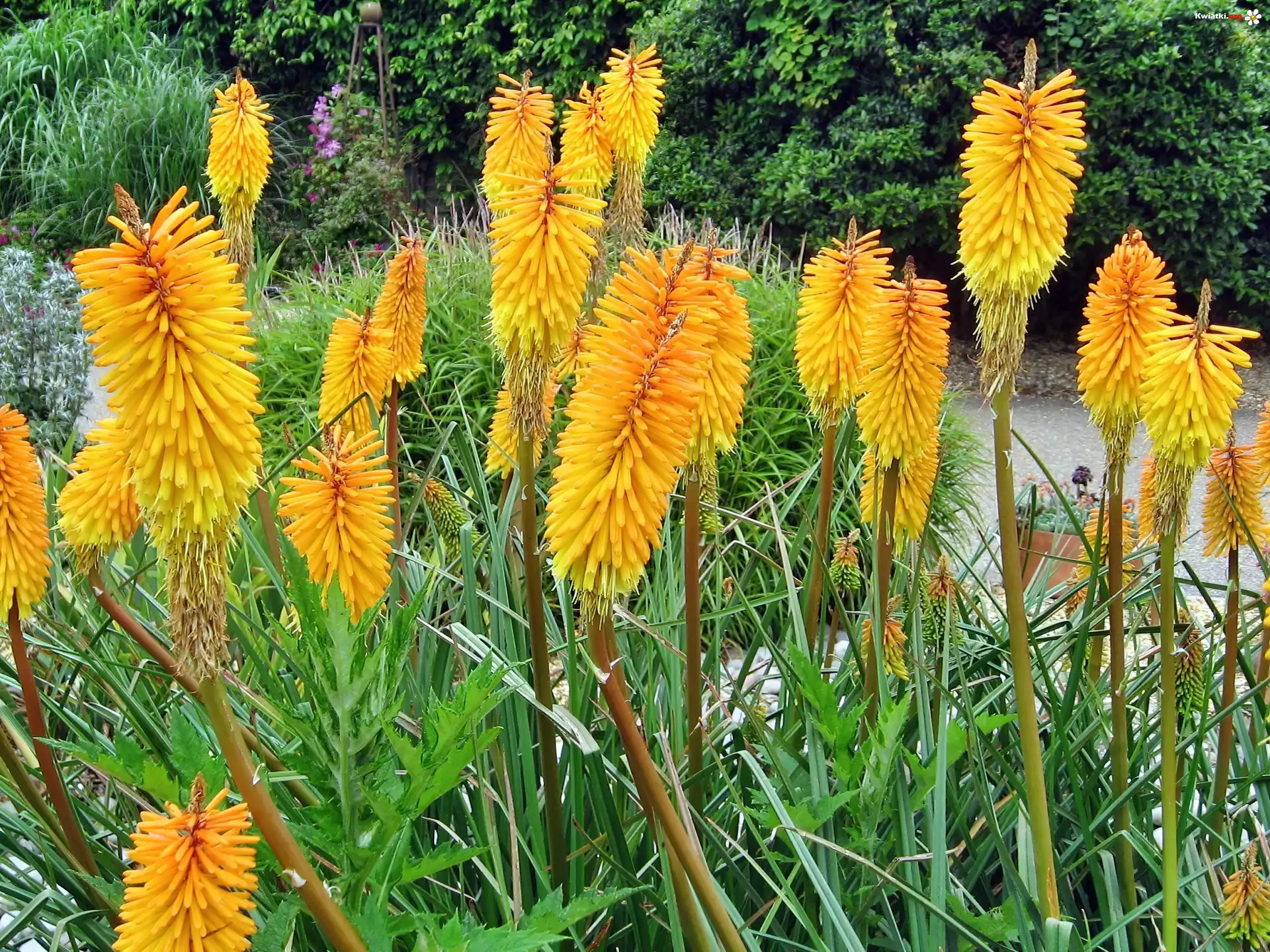 Kwiaty, Bratki, Tulipany, Trytoma groniasta, Malwa Kwiaty, Trytoma groniasta Kwiaty, Malwy, Trytoma groniasta Trytoma, Groniasta, Jedna, Ogród, Trawa, Lato Żółte, Egzotyczne, Kwiaty, Trytoma groniasta Pomarańczowe, Kwiaty, Trytoma groniasta