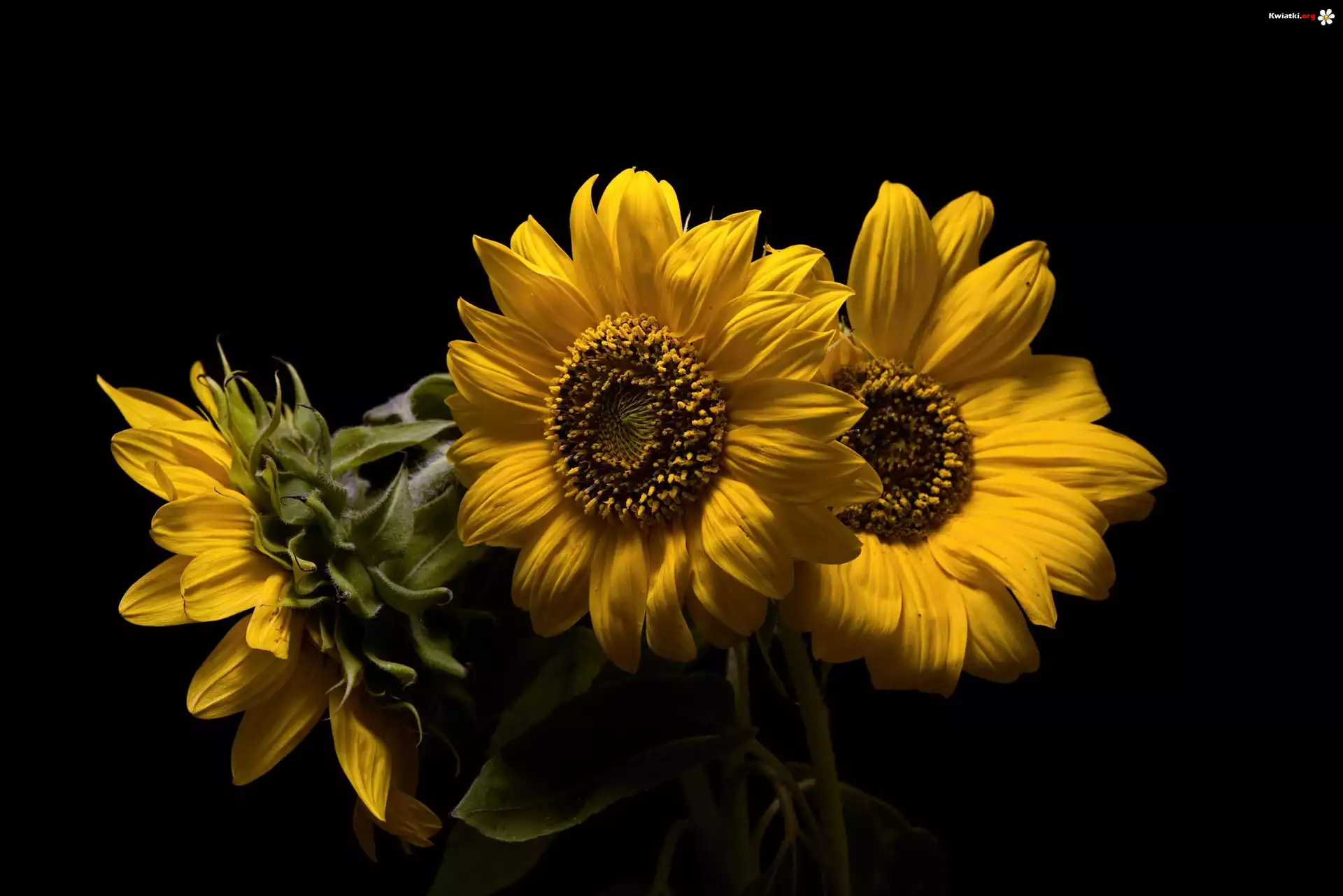 Trzy, Słoneczniki ozdobne, Czarne, Tło - Zdjęcia