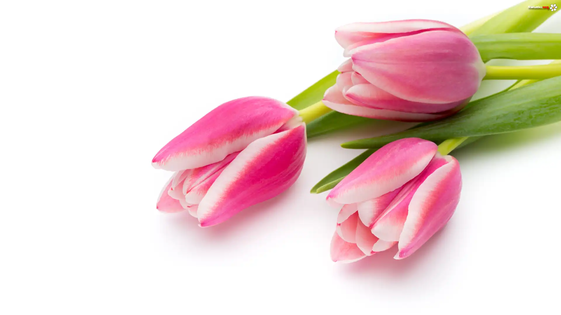 Kwiaty, Trzy, Tulipany, Biało-różowe, Białe tło - Zdjęcia