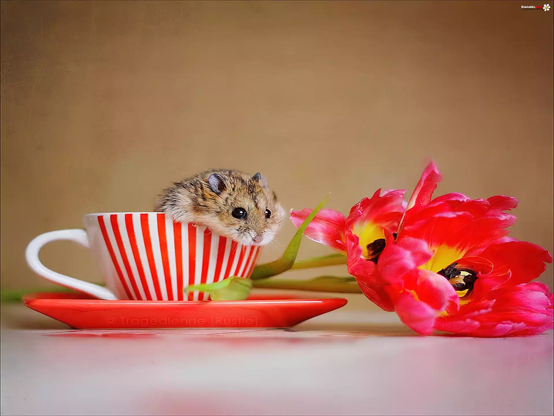 Chomik, Tulipany, Filiżanka - Zdjęcia