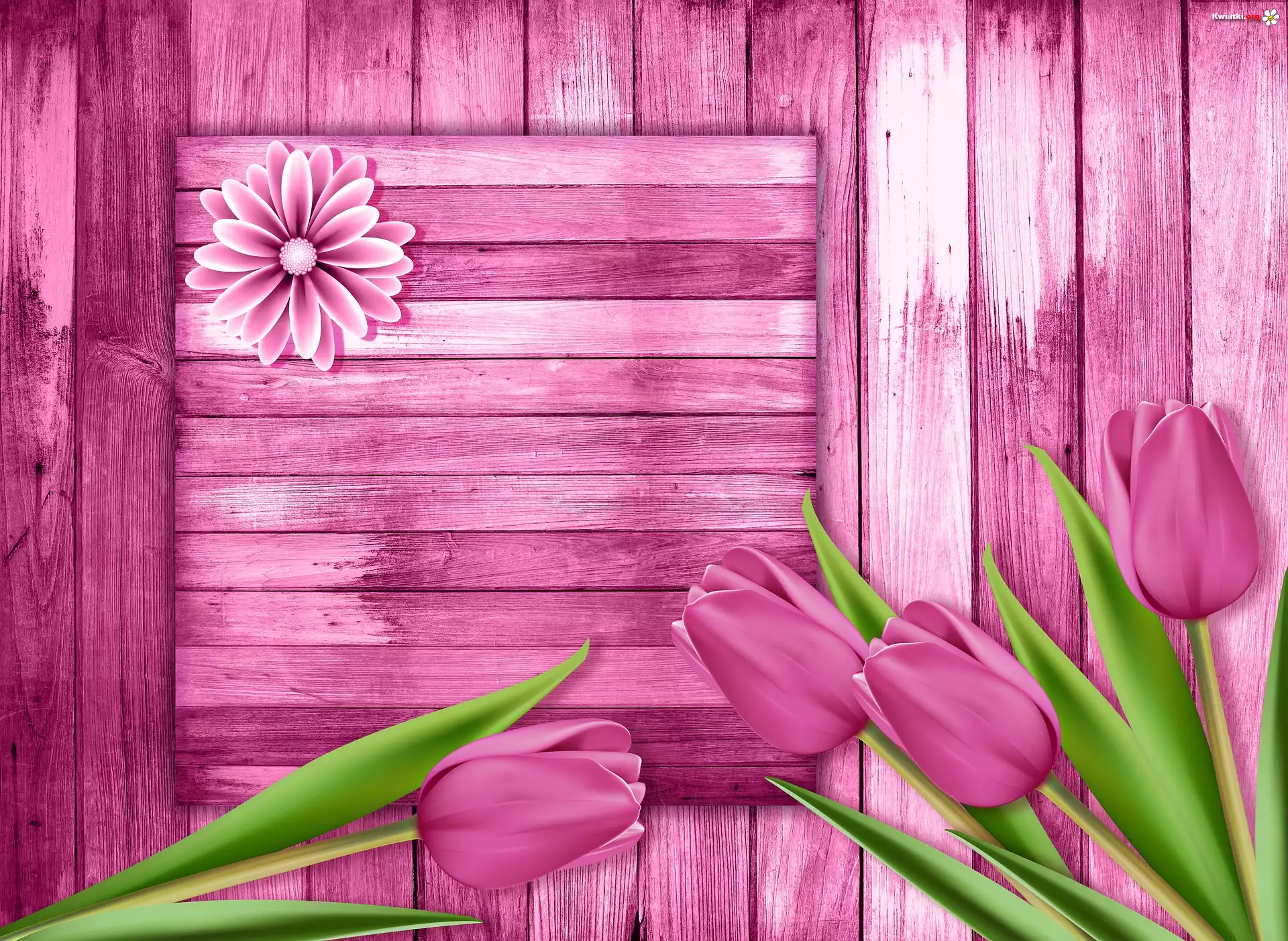 Tulipany, Różowe, Deski, 2D - Zdjęcia