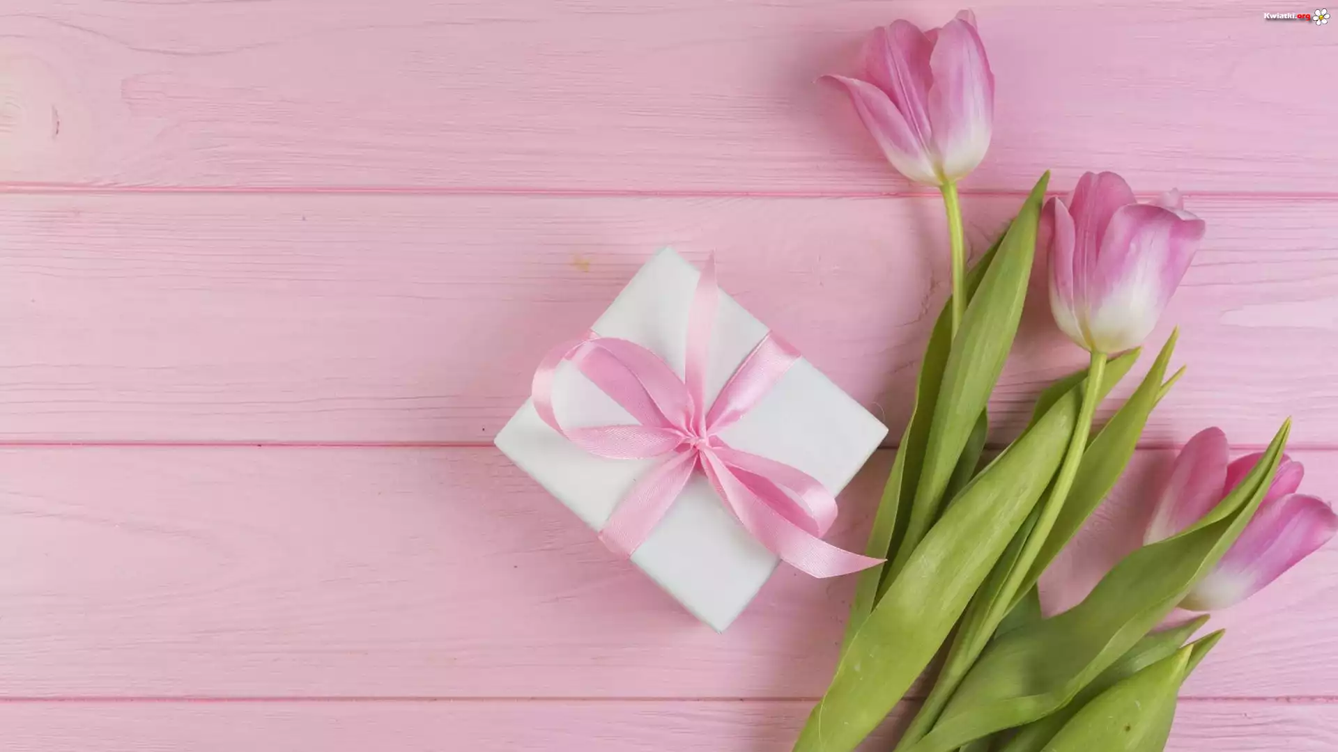 Kwiat Tulipany, Prezent, Różowe, Deski, Kompozycja