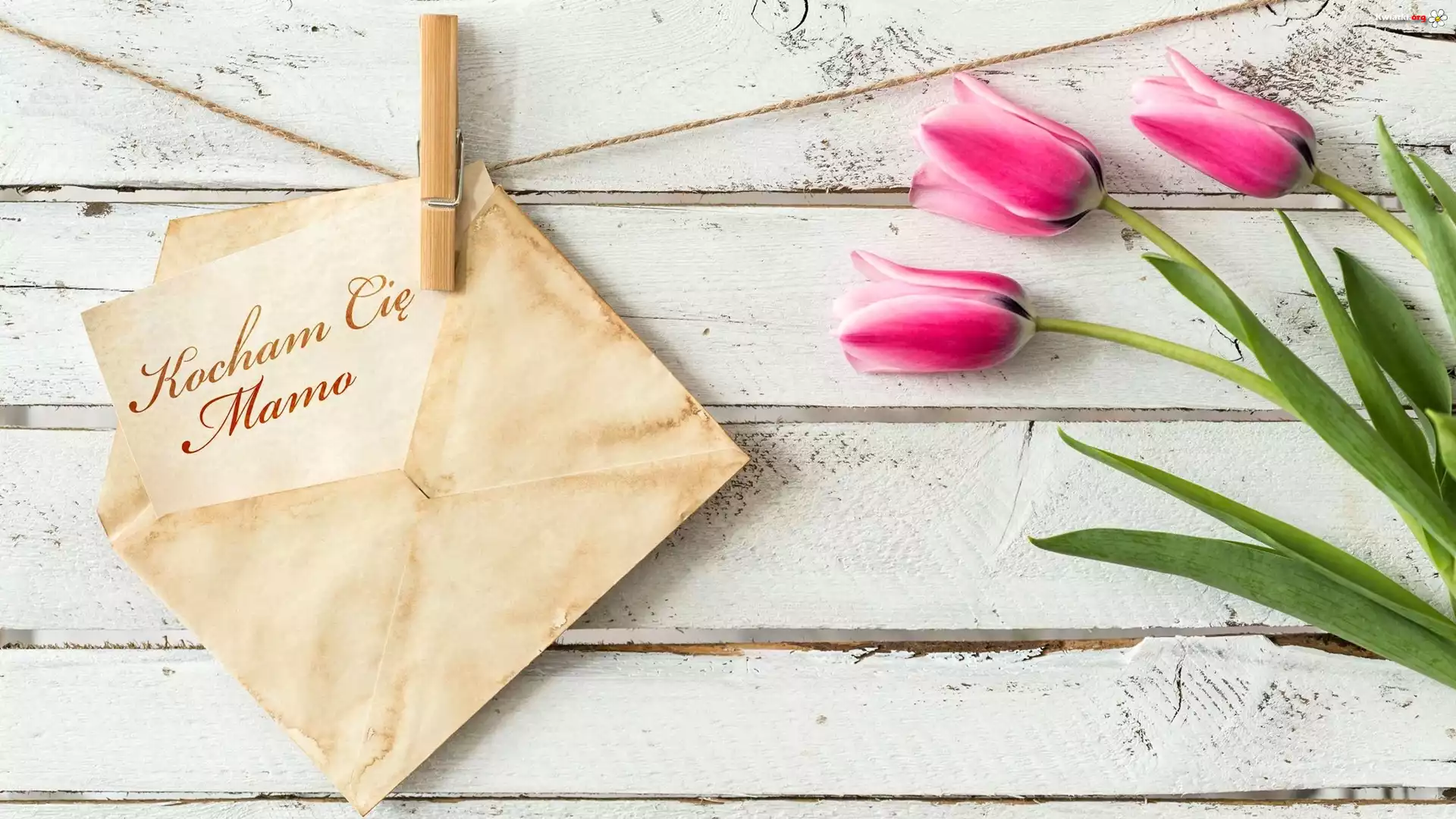 Kwiat Tulipany, Koperta, Napis, Dzień Matki