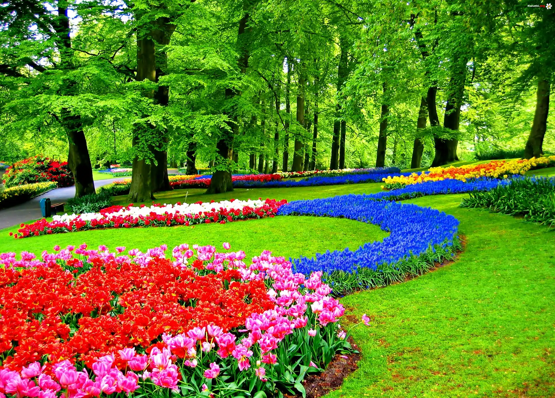 Tulipany, Szafirki, Park, Keukenhof, Lisse - Zdjęcia