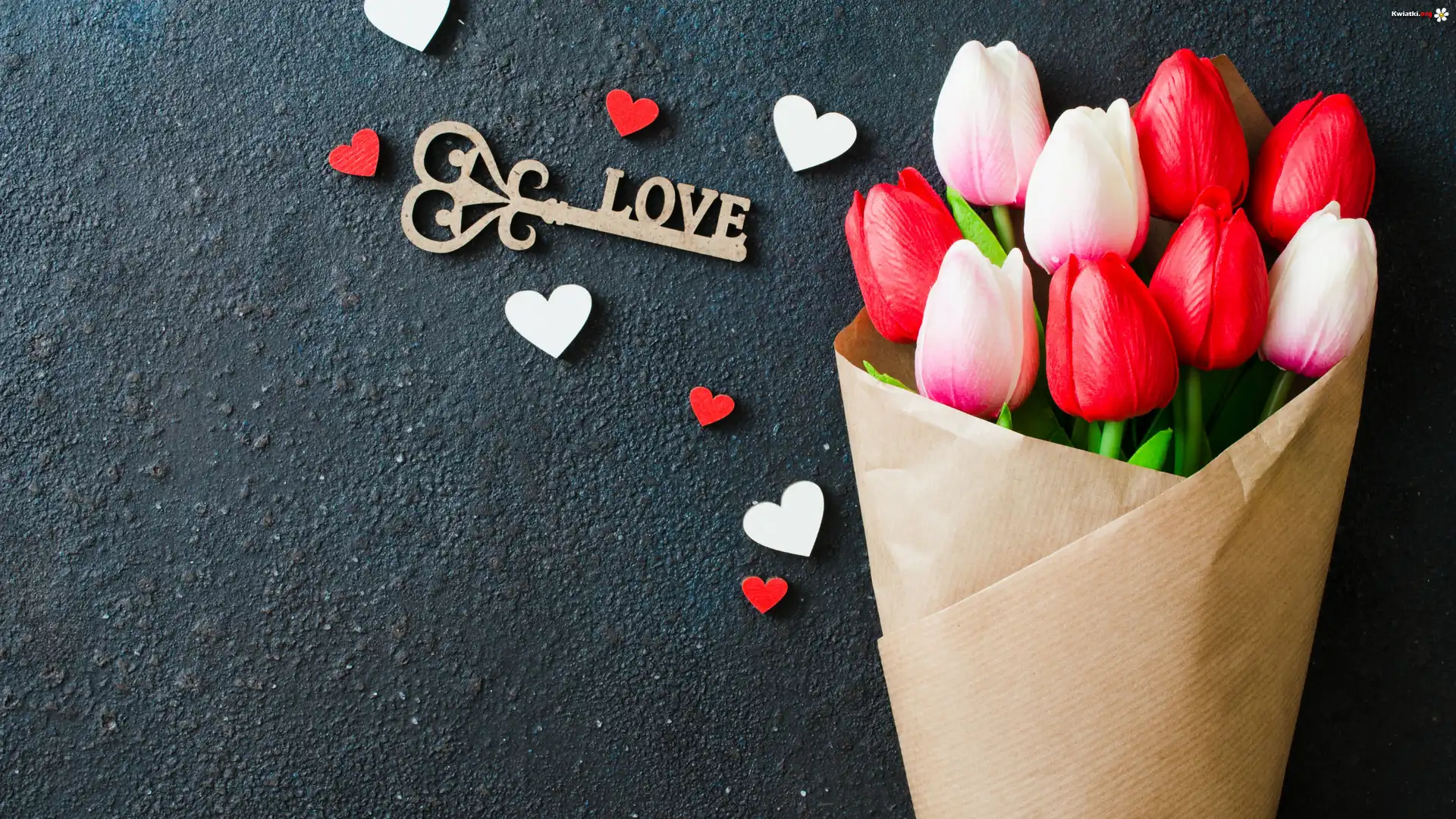Kwiat Tulipany, Bukiet, Serca, Klucz, Love