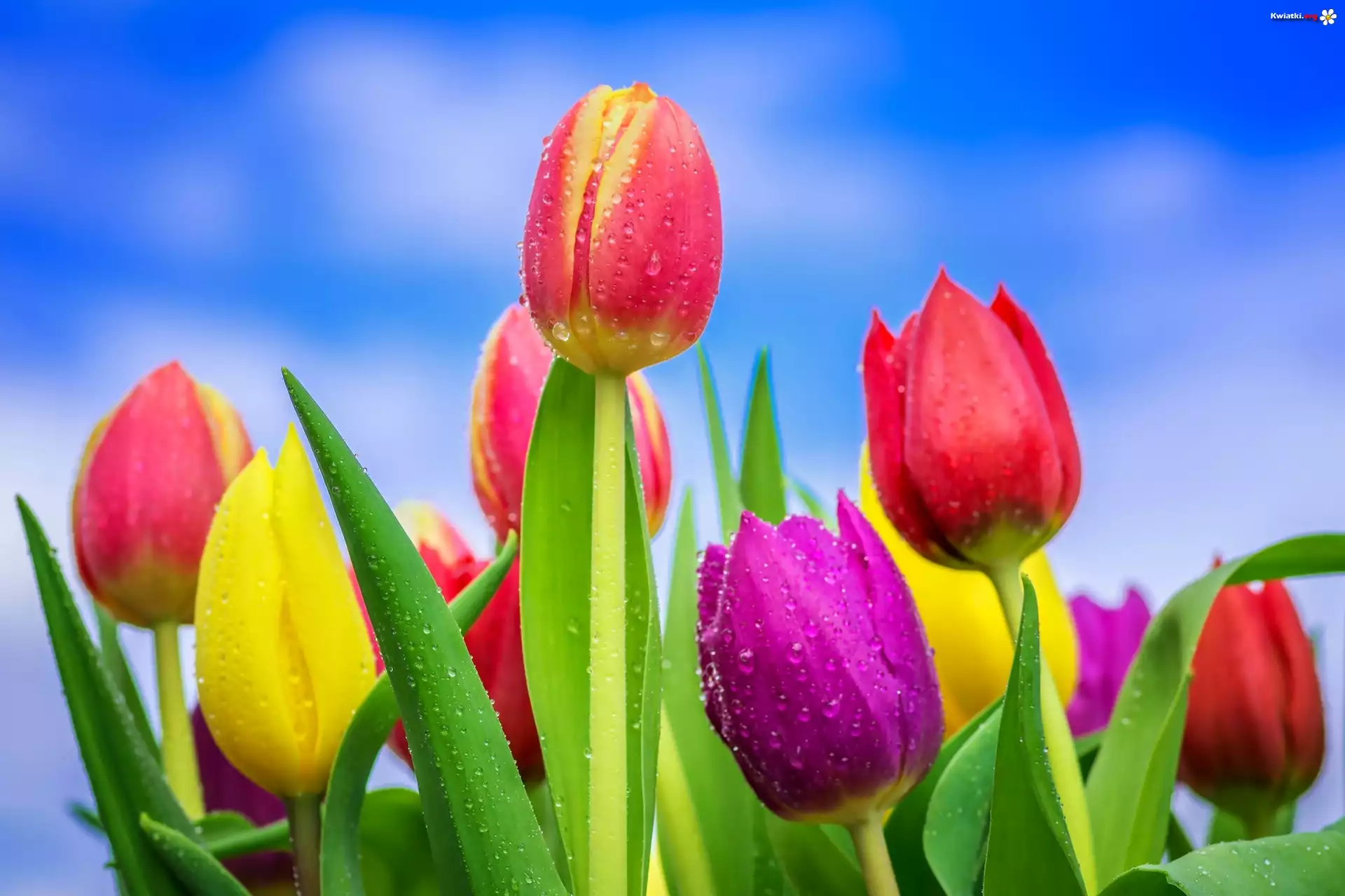Kolorowe, Tulipany, Krople - Zdjęcia