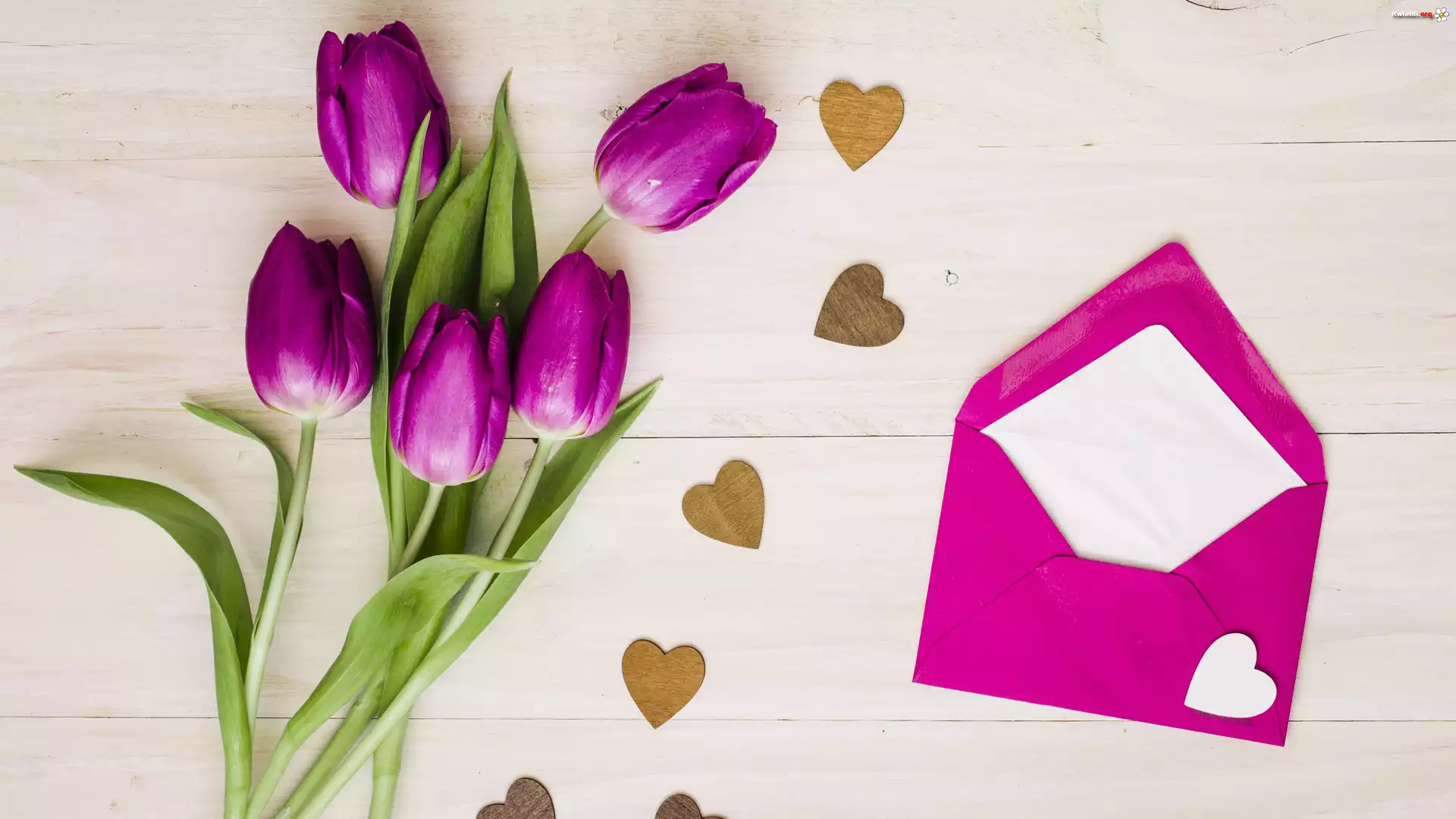 Tulipany, Bukiet, Koperta, Serduszka - Zdjęcia