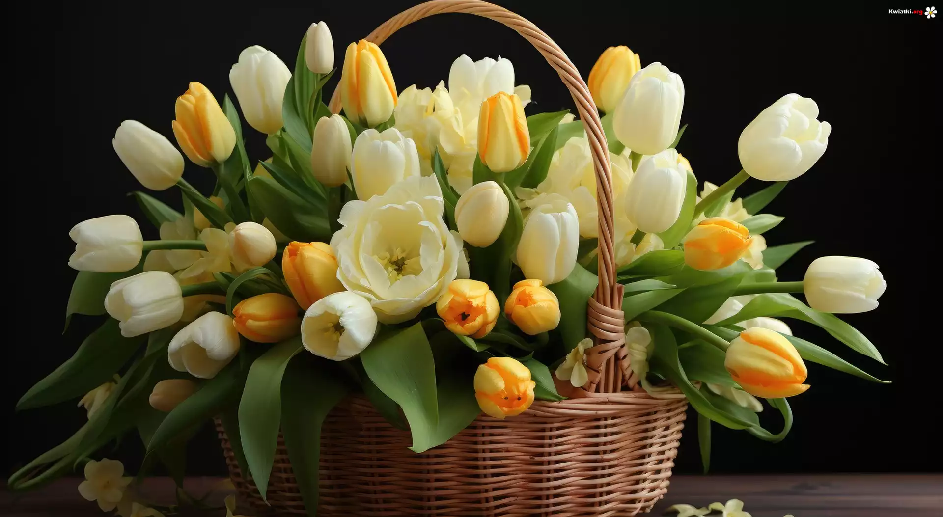 Kwiaty, Białe, Żółte, Tulipany, Listki, Koszyk - Zdjęcia