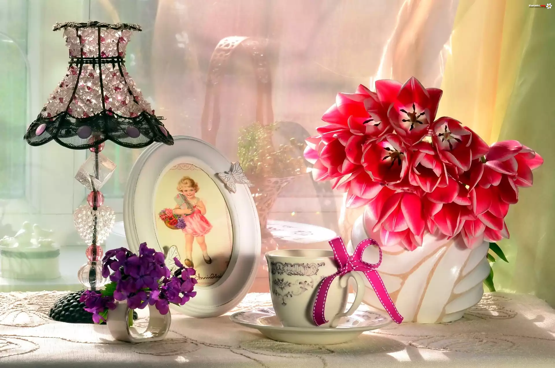 Tulipany, Bukiet, Lampa, Zdjęcie, Okno, Kompozycja - Zdjęcia