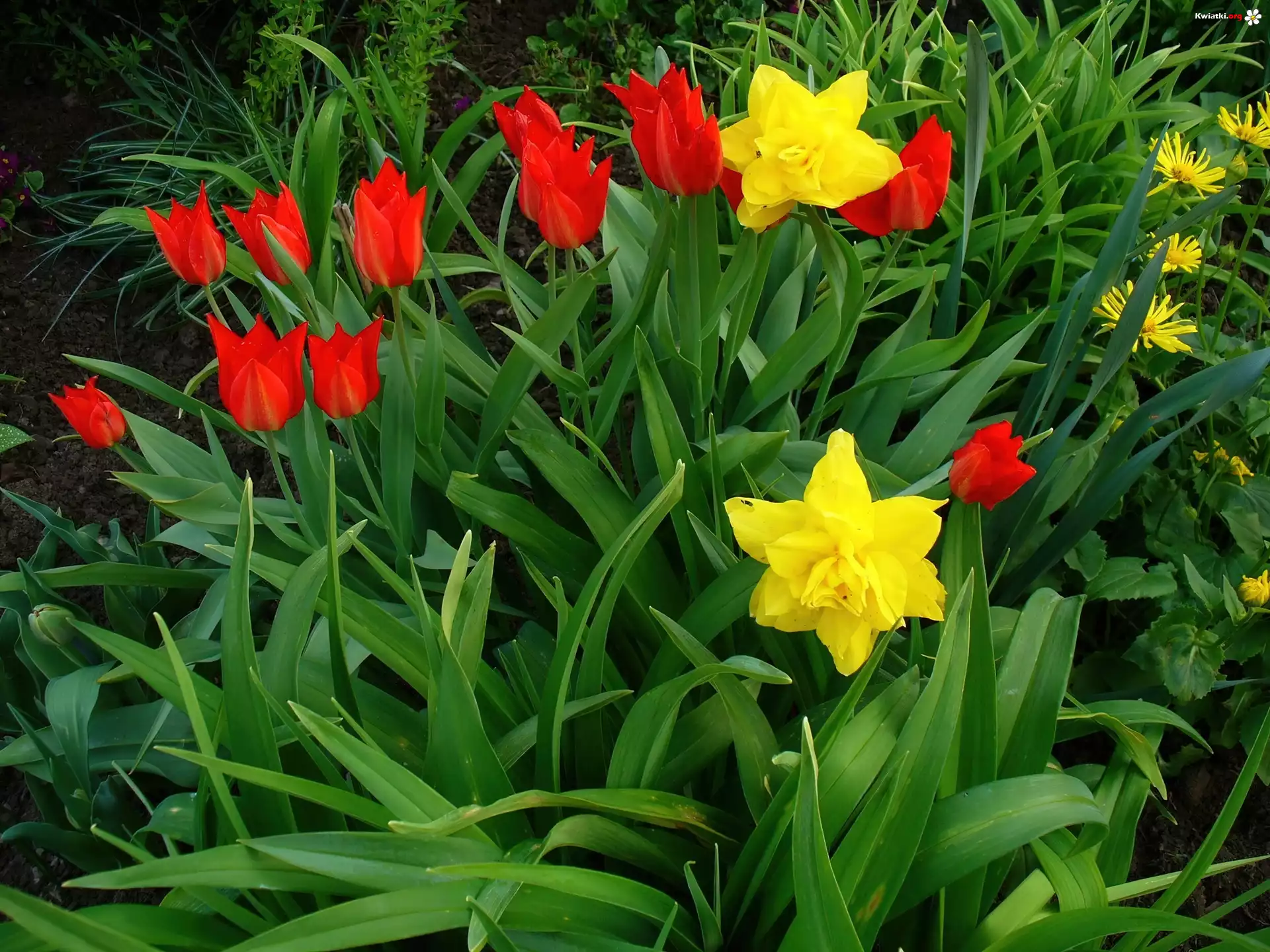Żonkile, Tulipany, Ogród - Zdjęcia